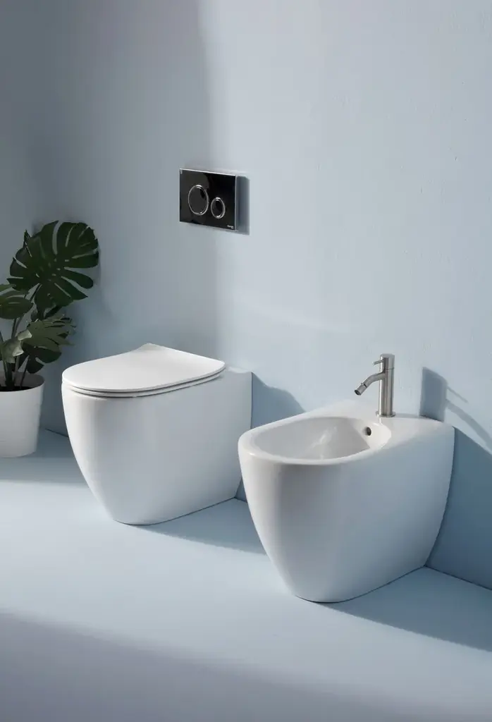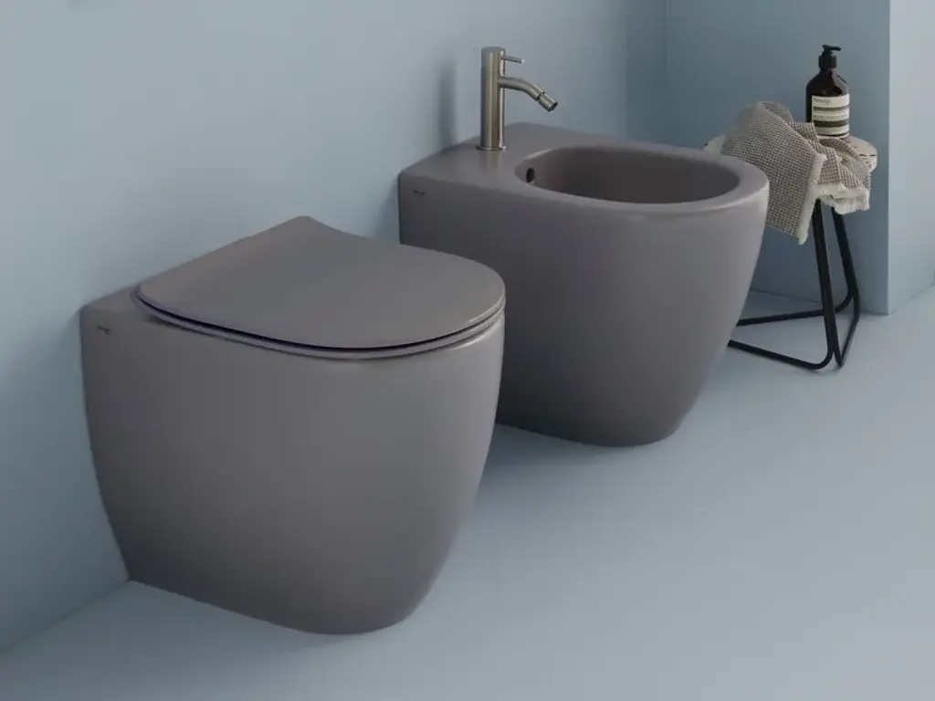 MONOLITH is a rimless floor-mounted toilet in Vetrochina.The VITTORIA floor-mounted toilets, with large curved surfaces and harmonious volumes, have the added benefit of the hidden vortex drain, which reduces noise, ensures maximum hygiene and requires less water. Thanks to this technology, the water flows uniformly along the walls of the toilet, eliminating the need for large quantities of water and ensuring deeper hygiene. These sanitary fixtures guarantee exceptional performance while minimizing water consumption and environmental impact. Furthermore, the toilet allows you to replace existing old-generation sanitary fixtures detached from the wall thanks to the outlet position.