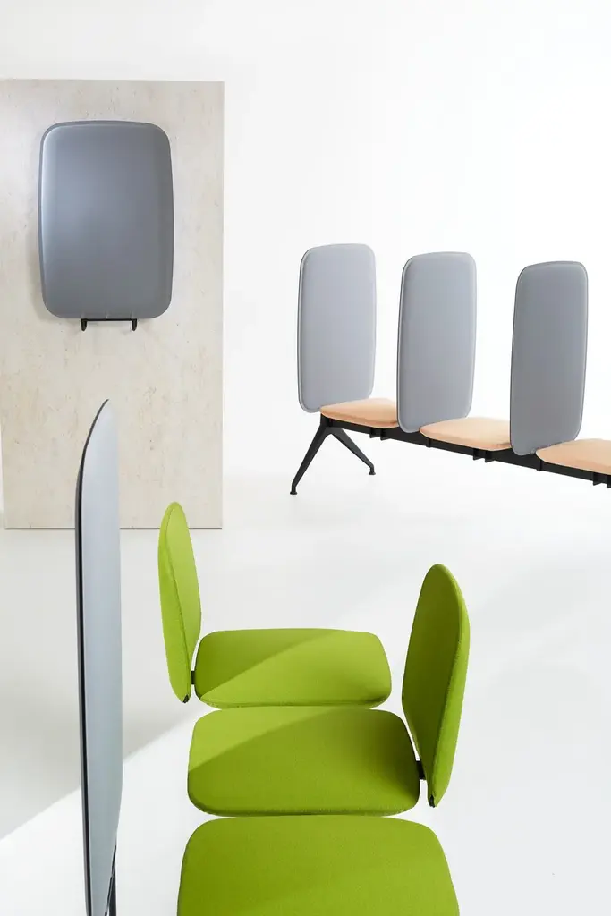 Viva bench is a 2 seater bench fitted with 3 acoustic and antibacterial panels, upholstered backrest.AVAILABLE MODELSUpholstered backrestAcoustic panelsTableCOLORS & FINISHINIGAvailable in different colors and finishingsCERTIFICATIONSEN 16139 / EN 1022 / EN 1728