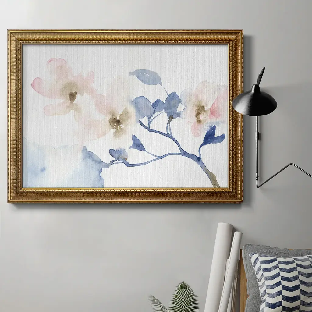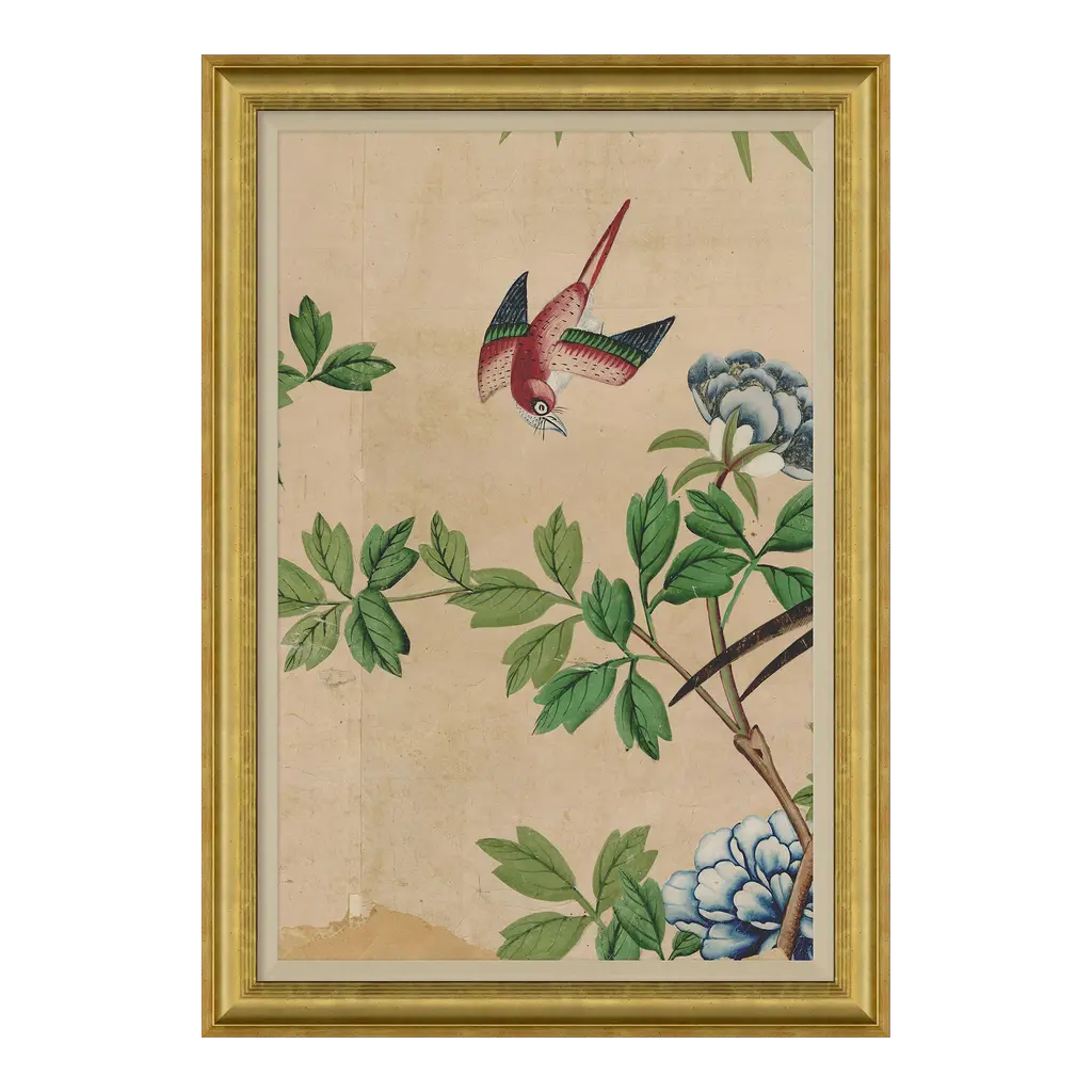 This pretty artwork features blossoming hydrangeas nestled among full, green leaves set on a natural gold background. Its charming design is perfect for kid bedrooms, offices, or bedrooms.