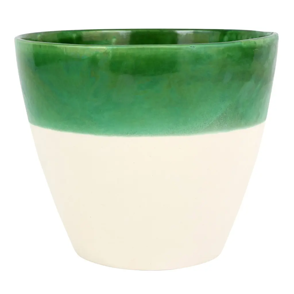 The viva Garden Reactive Cachepot is handcrafted from terra bianca, featuring a striking reactive glaze. Its vibrant colors and unique finish bring a natural, earthy charm to your space, making it an ideal piece for displaying plants or flowers.