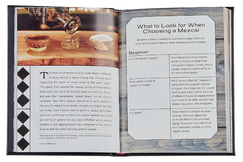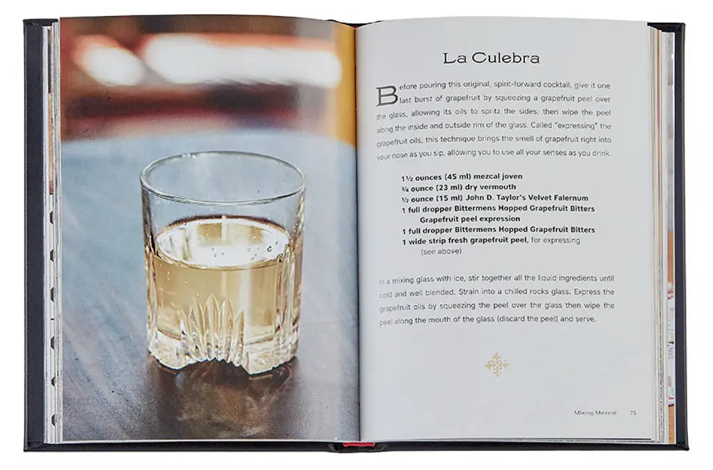 Artisanal Mezcal follows a delicate underground baking process that has existed for hundreds of years, but it is only now that it’s experiencing a Renaissance in craft cocktail bars and homes around the country. Made from agave, but so much more than tequila, Mezcal’s smoky flavor and smooth finish--as well as its artisanal, farm-to-table background--has made it the new “spirit du jour.” This book contains 50 cocktail recipes you can make at home with delicious, versatile out-of-this world Mezcal, containing information about how this small-batch liquor is made by Oaxacan families, and will include tasting notes on almost every brand. This edition is bound by hand in genuine leather with debossed gold lettering.