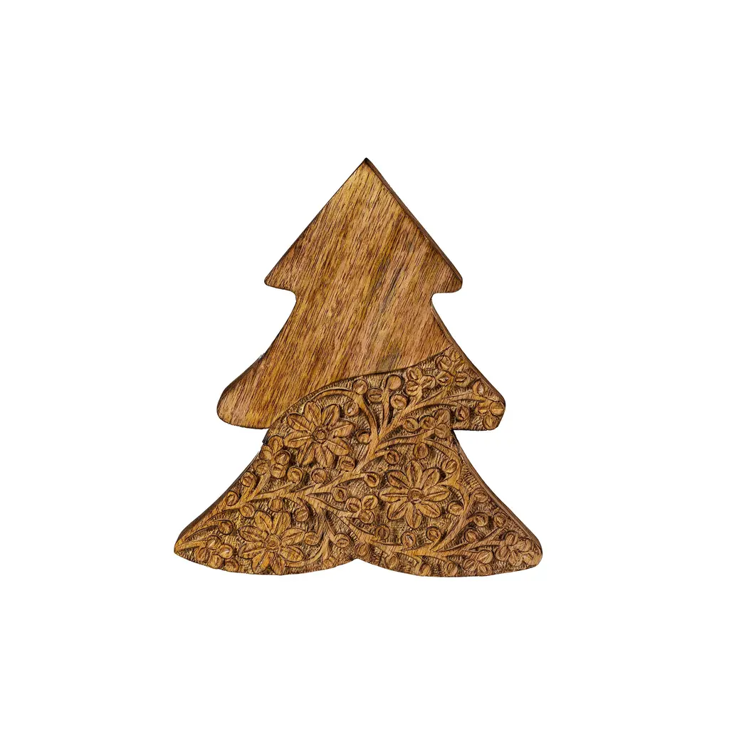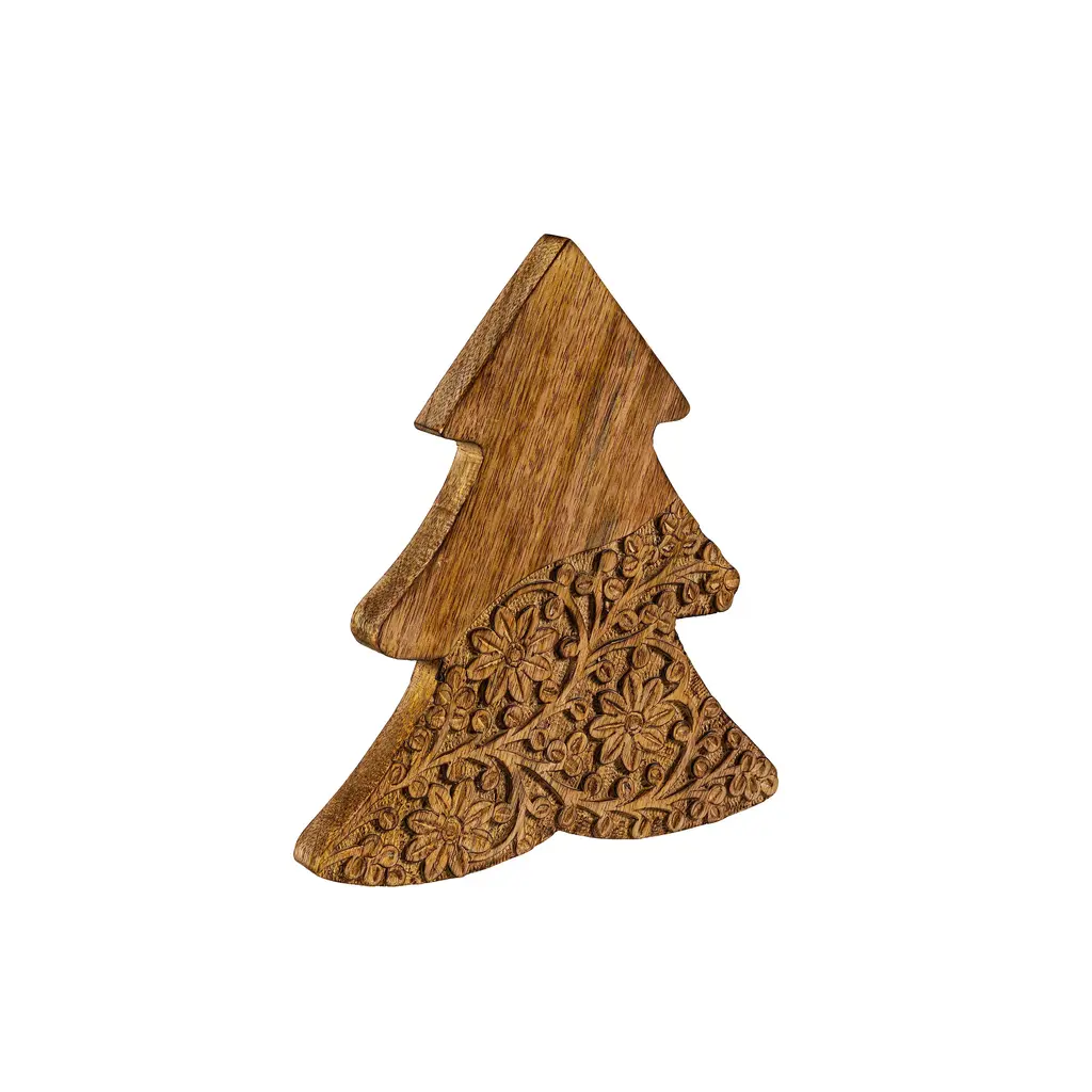 Vivastyle Playful Poinsettia Table Decor, Wood Decor, Carved Floral Tree, Set Of 2