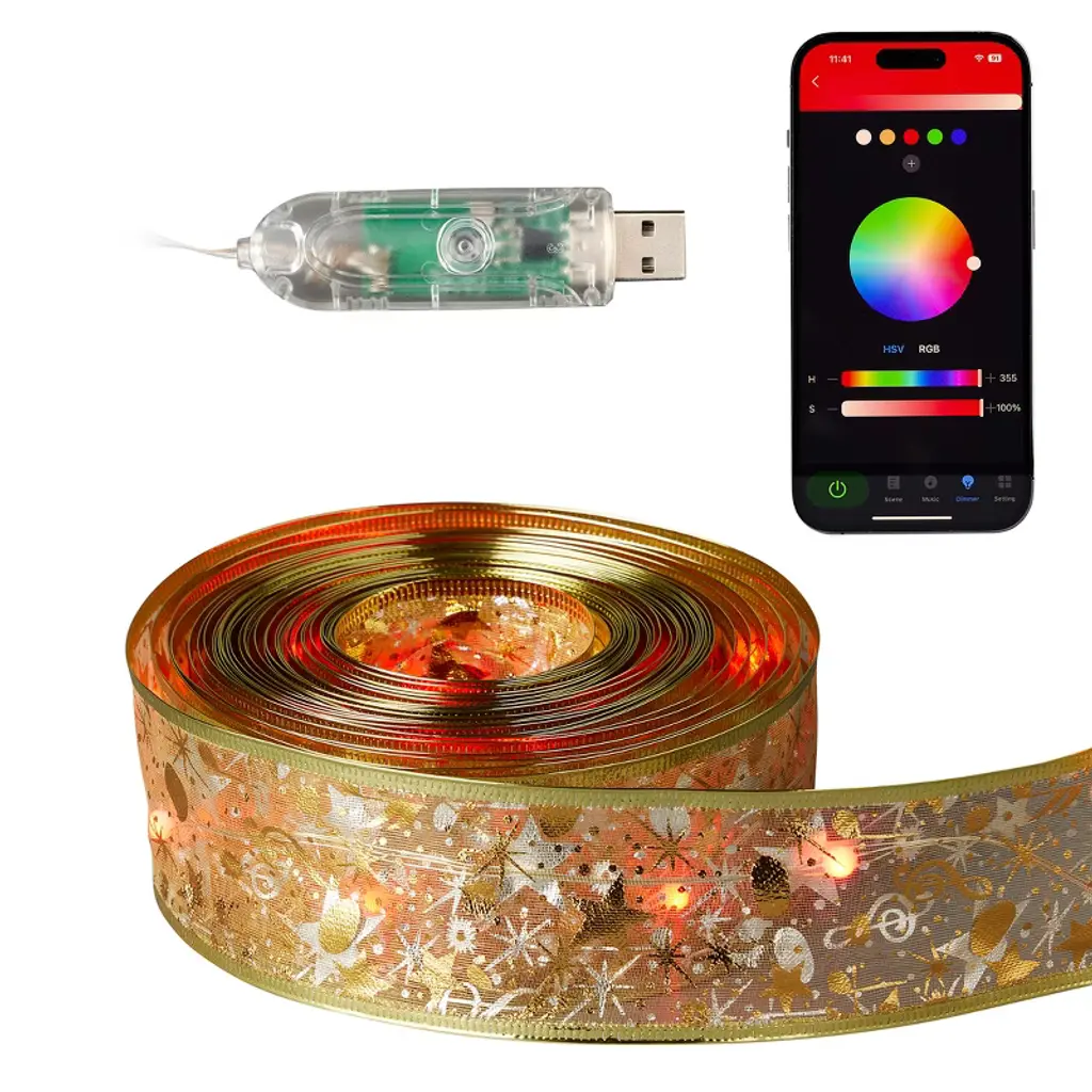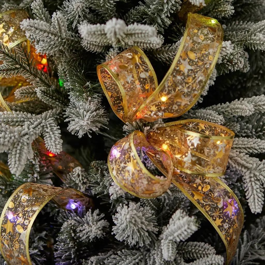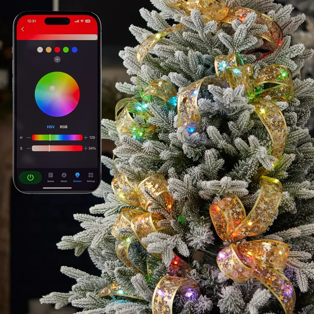 Vivvi App-based Customizable, Pre-lit Gold 2" Wired Ribbon, 32 Ft Long