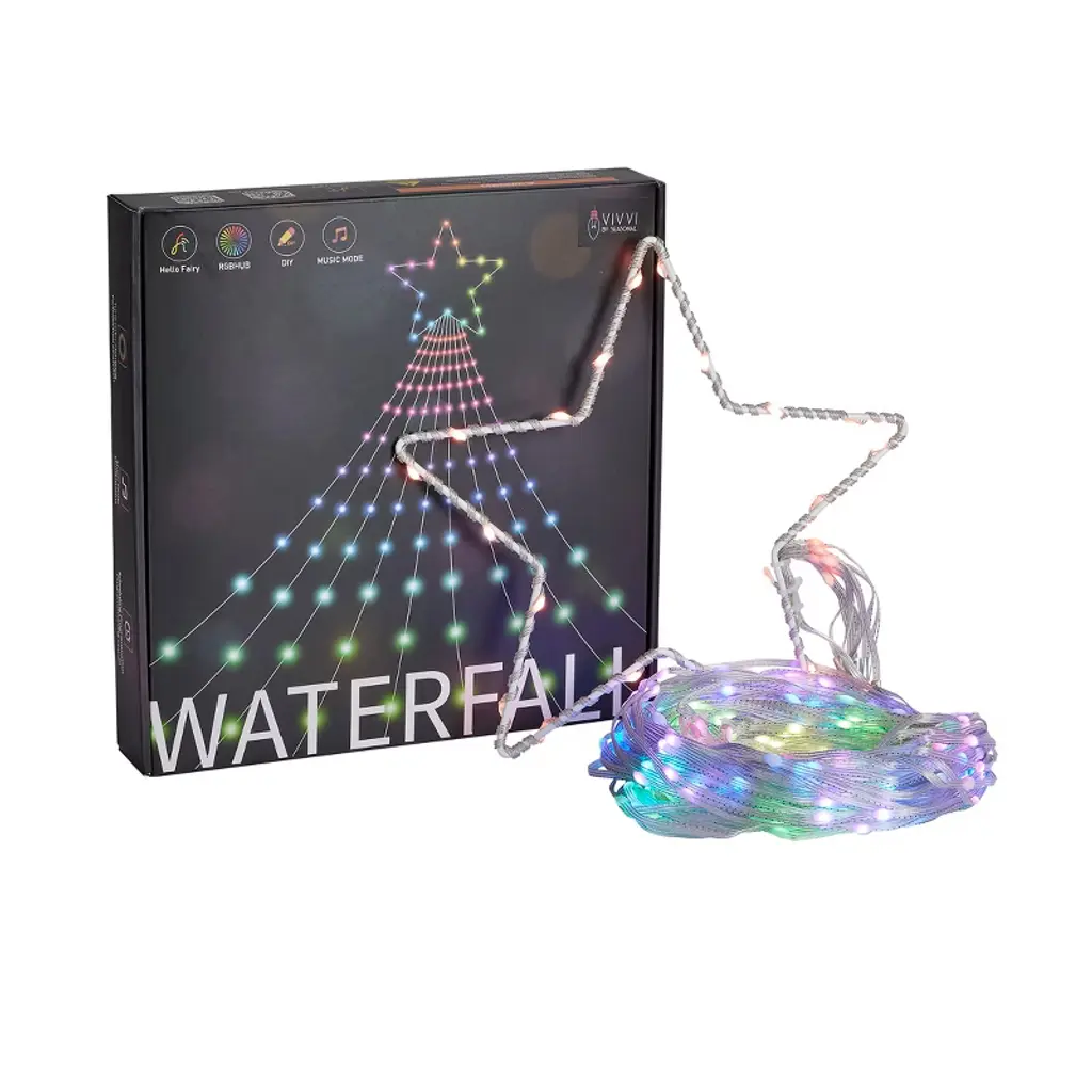 Transform your festive décor with the enchanting Vivvi by Seasonal Star Waterfall Lights. These Bluetooth-enabled outdoor string lights with a star topper offer unparalleled customization compared to traditional Christmas star string lights.