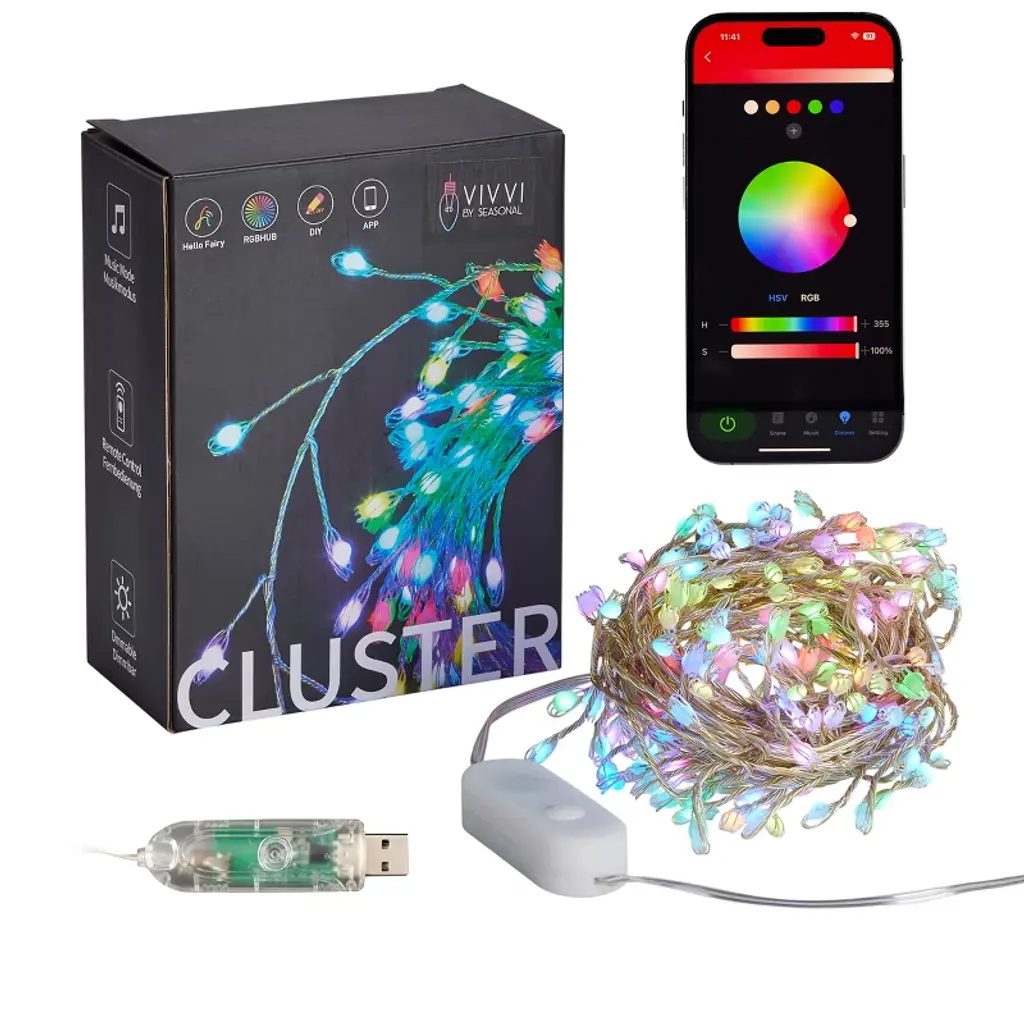 Vivvi App Based Rgb Cluster Lights, 19.7' 200 Leds