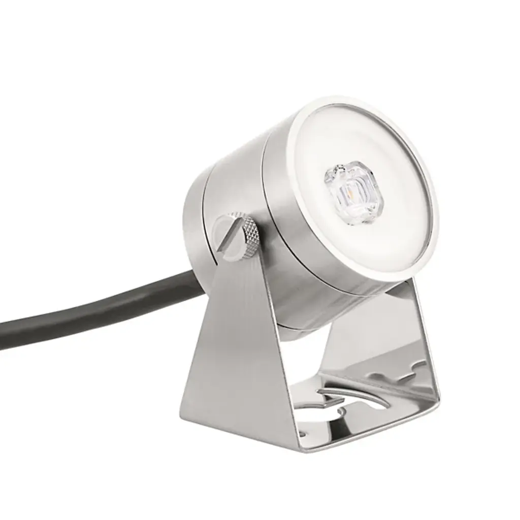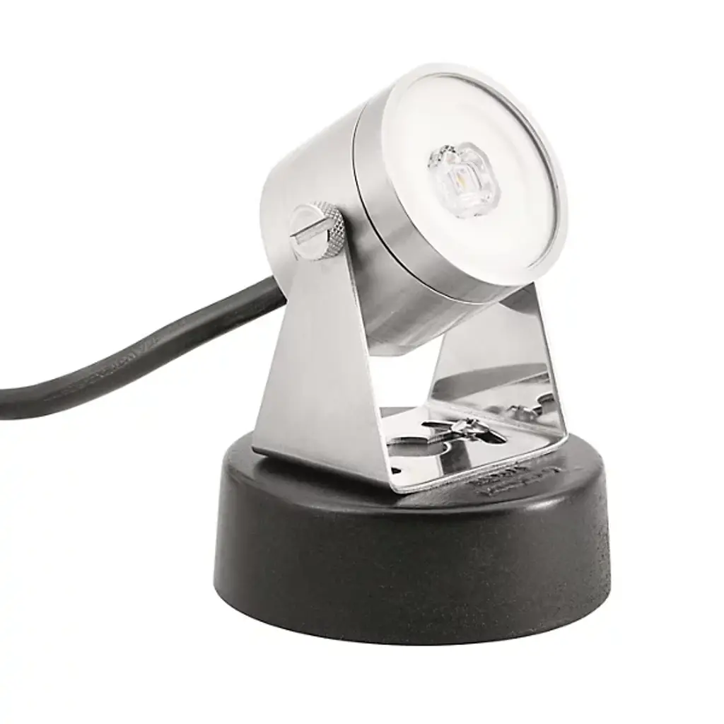 Bring a bright and elegant note to your indoor or outdoor water features with the smooth and adaptable structure of the VLO Underwater LED Accent Light from Kichler. A corded fixture that’s friendly to aquatic life, it starts with a bracket mount that rises to position a pivoting LED lamp inside a beveled shade, while each wire connector is durable and rated for wet conditions. The lamping’s brightness is easily adjusted, even underwater, while its robust mount can be easily secured alongside wet areas or when weighted down inside them.