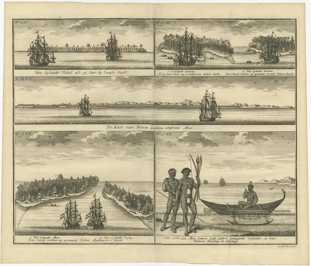Voc Ships, Native People & Coastal Views Of Islands Near Papua New Guinea, 1726