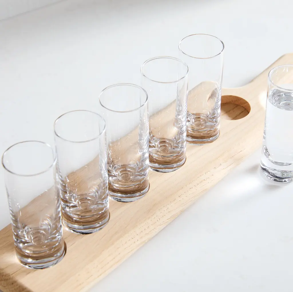 A set for serving after-dinner drinks. Made from natural wood. Serve guests in rustic style.