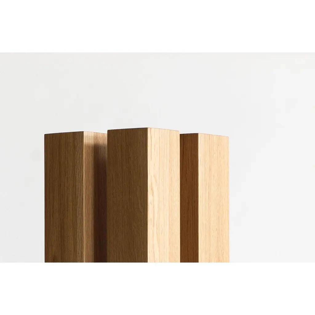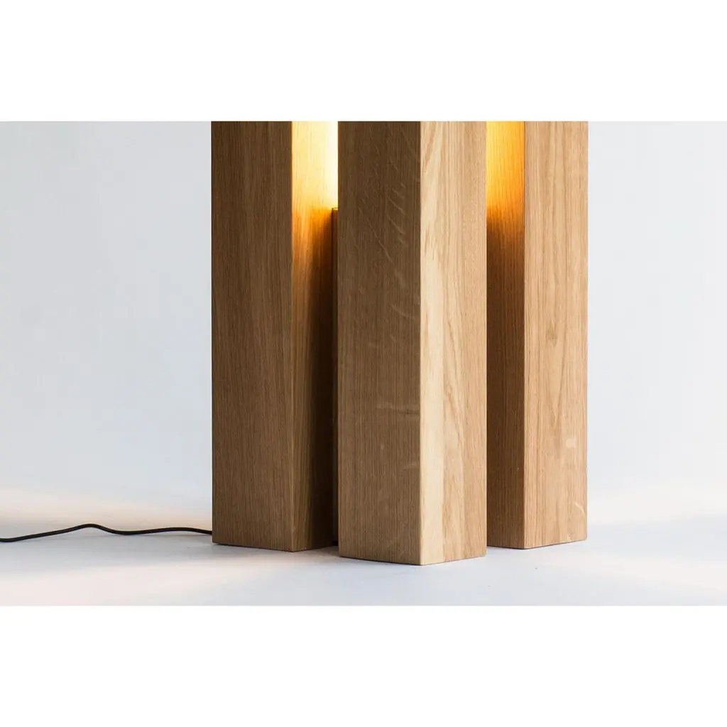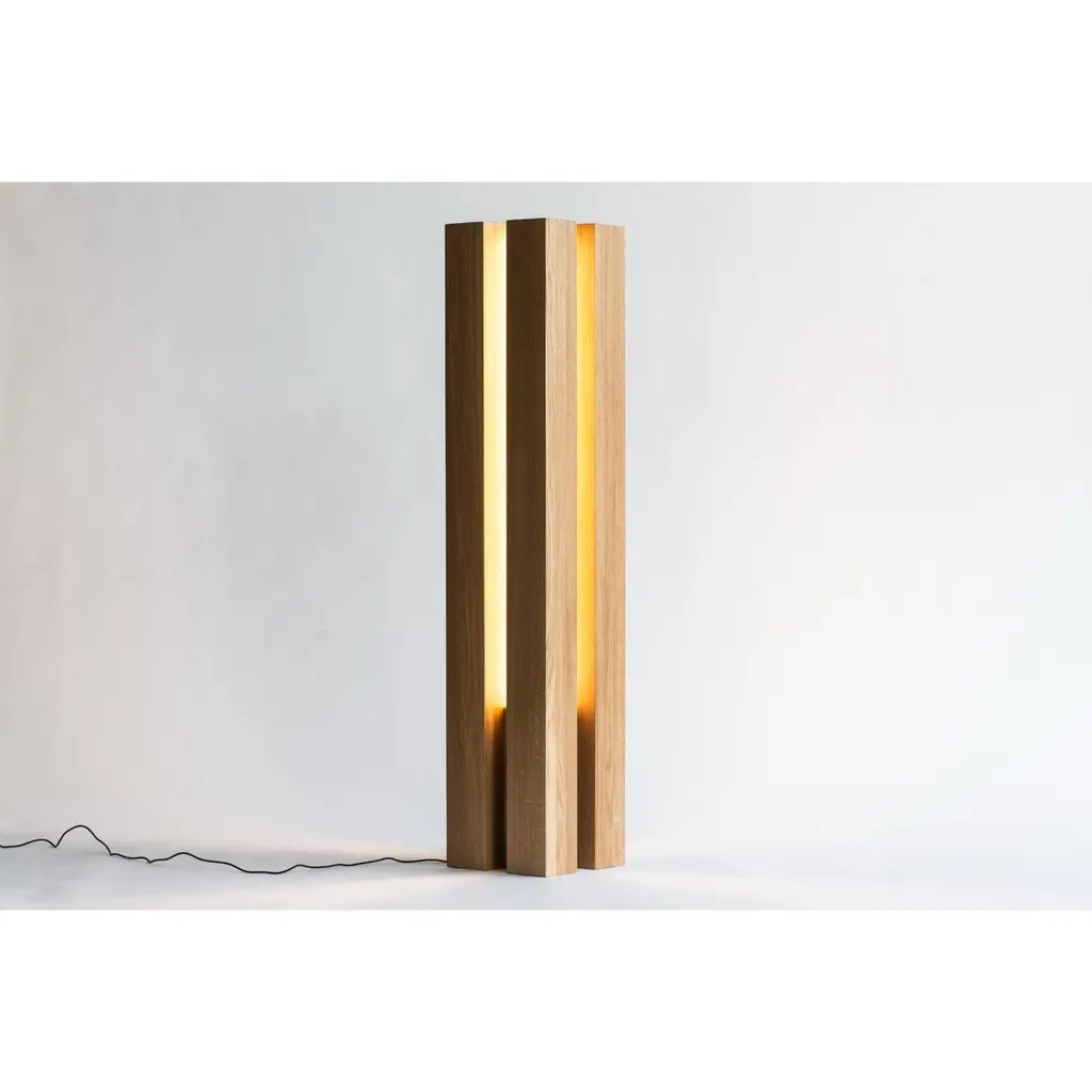 Void 01 by DMNTS DesignDimensions: 25 x 25 x 125 cmMaterials: OakUnique PiecesAlso available one piece in solid oak. All our lamps can be wired according to each country. If sold to the USA it will be wired for the USA for instance.VOID 01 is a lighting monolith, based on a design process focused on the empty space, as the generative element of form and function, a specific shape, from an ancient olive tree, become the compositional matrix. The geometry, essentially distinguished by the contrast - juxtaposition between the solid materiality with the void brightness and a manufacturing process characterized by a marked craftsmanship methodology. The led tube nested in the structural base diffuse the light, screened in the interiors, through the pure oak’s monoliths from FSC(R) sources.Lorenzo Demontis is an architect and designer based in Sardinia, Italy. Since graduating from Sapienza University in Rome, he has been working as freelance designer for various design and architecture studios in Italy and in the Netherlands, as well as carrying on with his own projects with DMNTS.Lorenzo’s aim is to research and develop a design approach where archetype forms are combined with pure functionality and contemporary issues.Establishing new relations between advanced manufacturing and craftsmanship. Focused on a complete sustainability, where manufacturing scraps from wood, marble and plastic industries, regain a purpose through specific design investigations.