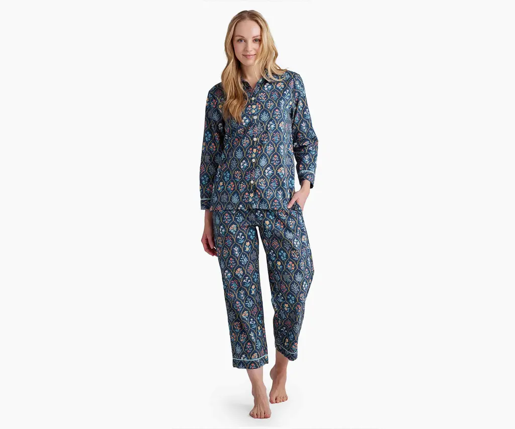 A summer-weight short set, made from airy, soft cotton voile. The classic top features a button-down design, a notch collar, and piping trim. The shorts are made extra-comfy with an elastic drawstring waist and pockets. While the collection fits true to size, we recommend using the fit guide as a reference.
