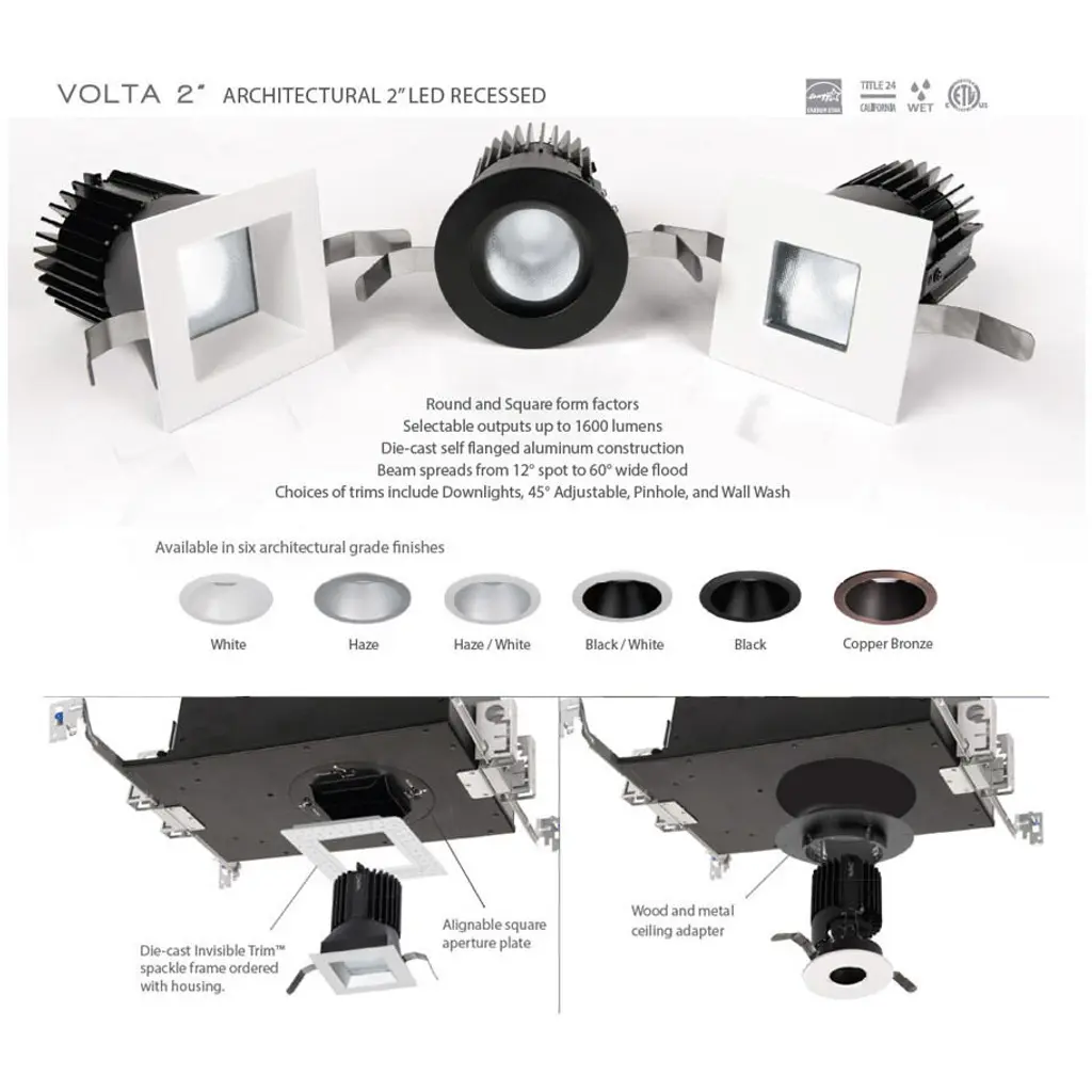 Volta 2in Square New Construction Housing Lutron 22W Chicago Plenum