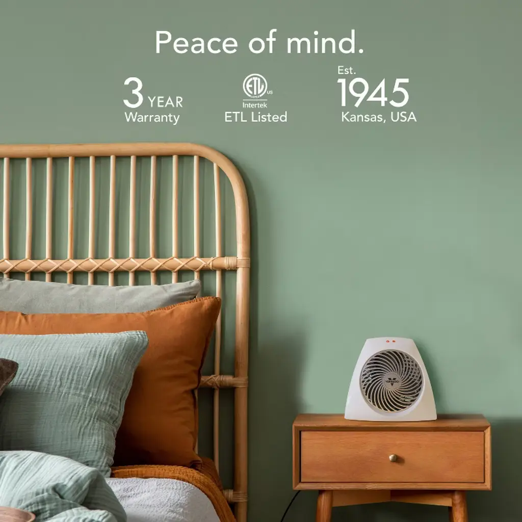 Unlike Vornado’s whole room heaters, the VH204+ is designed to circulate heat specifically around your personal space – making it perfect for desktop, tabletop or under desk heating applications. The surprisingly powerful, yet quiet fan wraps you in comfortable superheated air. The VH204+ offers noticeable performance from a minimal footprint. Because the VH204+ is a Vornado, it features powerful deep pitch fan blades, and advanced safety features such as tipover/heat overload protection and a cool-touch cabinet.