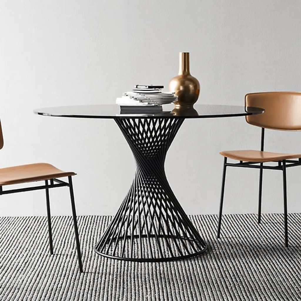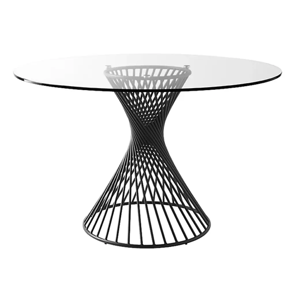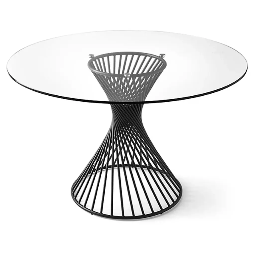 The inspired design of the Calligaris Vortex Table creates a powerful piece in a compact space. The helical shape of the Matt Black Metal base gives the table a dynamic presence while the Tempered Glass top adds an elegant appeal. The symmetrical structure makes this table an interesting visual from whichever angle you choose, and a great addition to a modern living room.