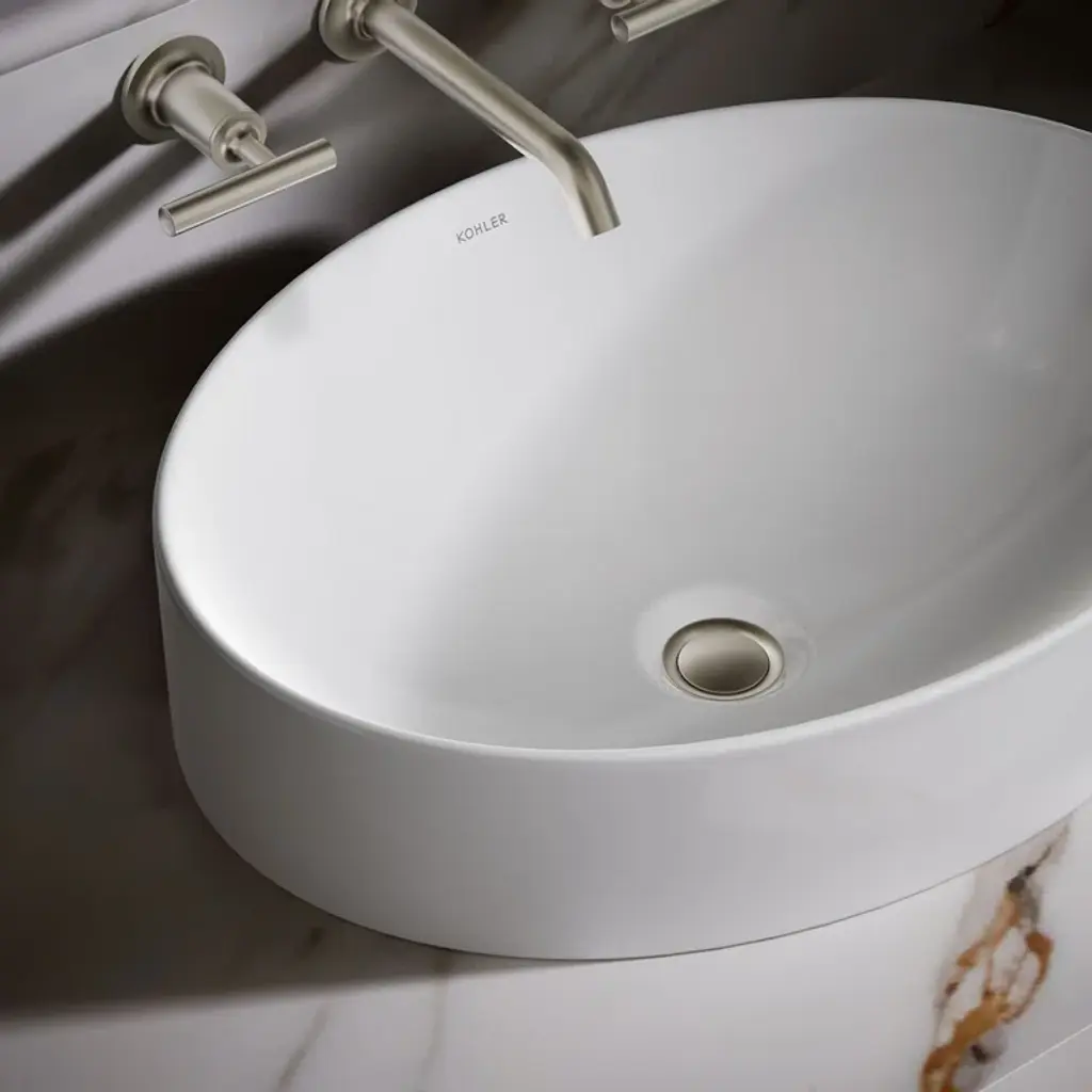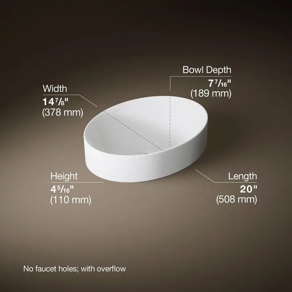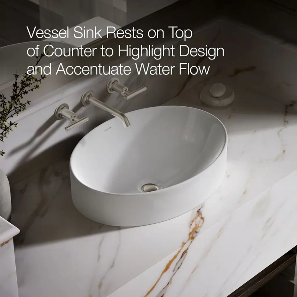 Sleek and contemporary, the Vox® oval vessel-style sink features a simple oval silhouette in a true minimalist fashion. Countertop installation ensures this sink will stand out in your bathroom as a striking focal point.