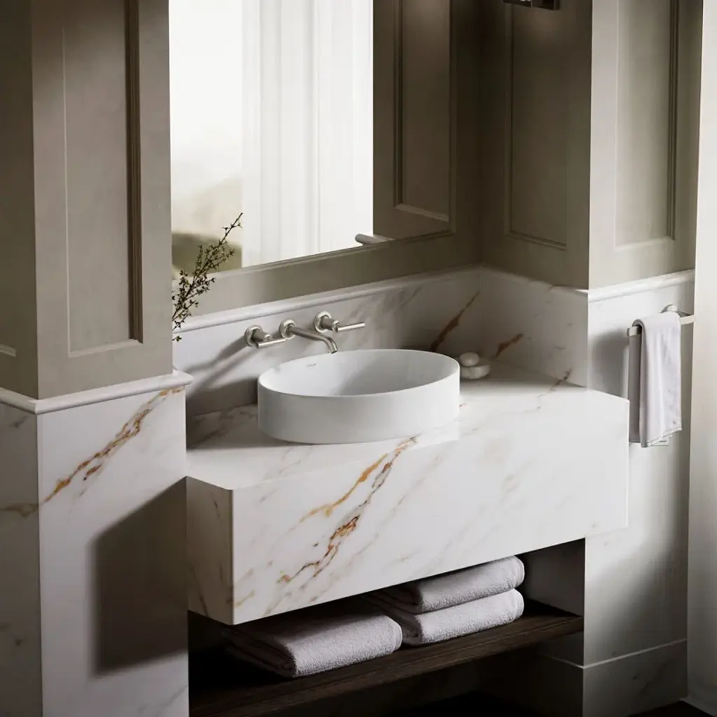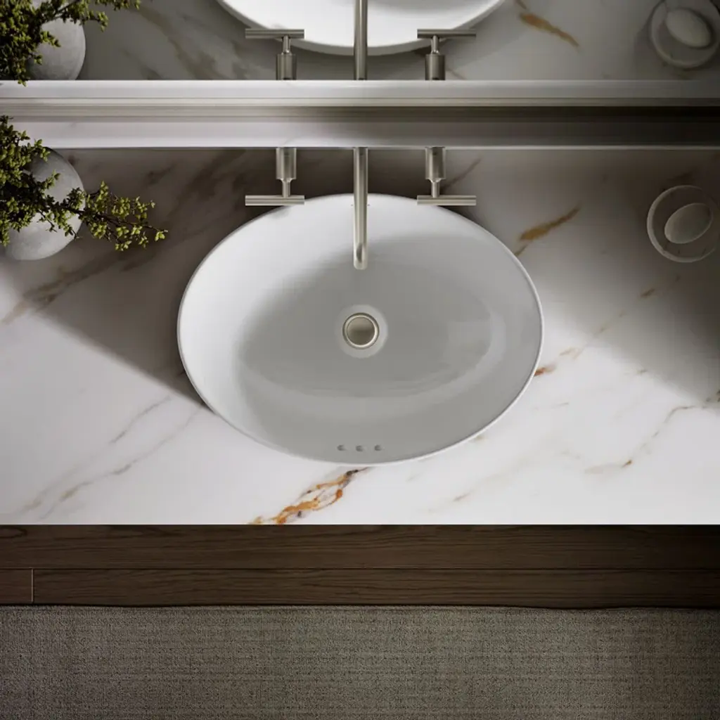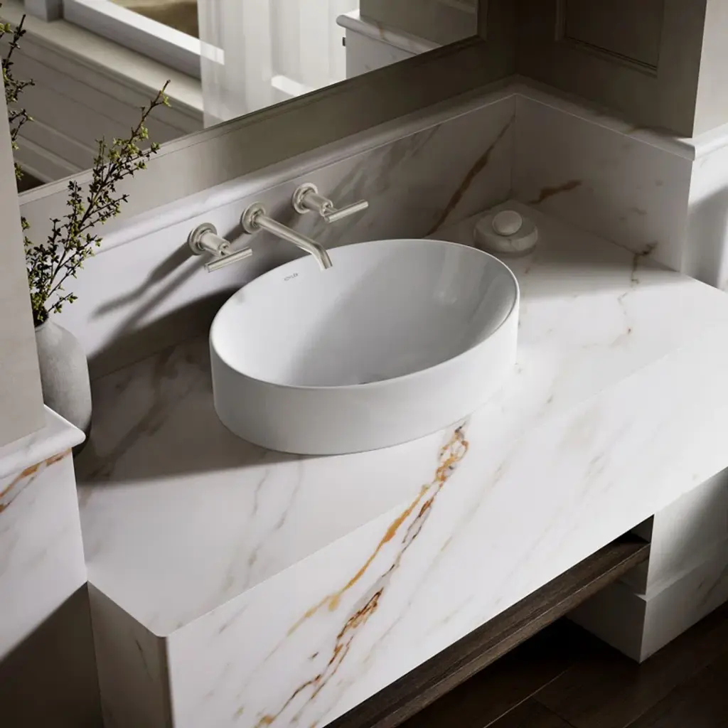 Sleek and contemporary, the Vox® oval vessel-style sink features a simple oval silhouette in a true minimalist fashion. Countertop installation ensures this sink will stand out in your bathroom as a striking focal point.