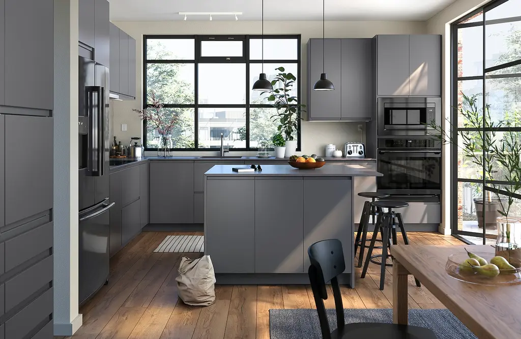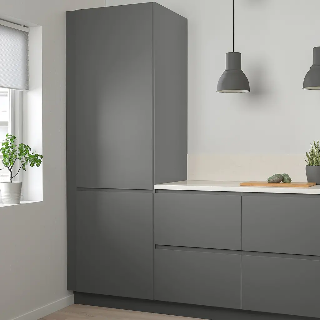 VOXTORP Door - dark gray 15x50 ". VOXTORP is a smooth door with integrated handles. It brings clean lines and an open, modern look to your kitchen. 25-year Limited Warranty. Read about the terms in the Limited Warranty brochure. You can choose to mount the door on the right or left side.