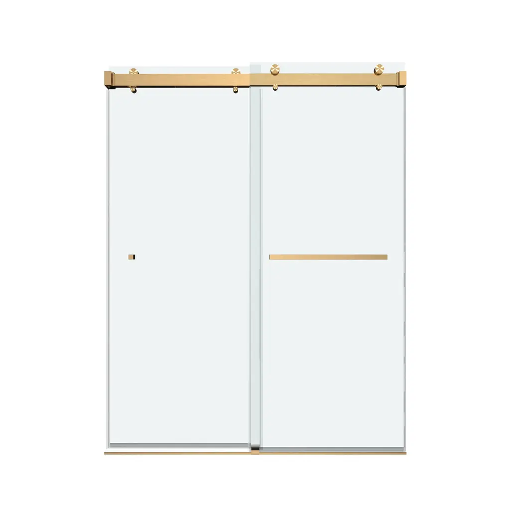 Vs Series 68" - 72" W X 78" H Soft Closing Frameless Double Sliding Shower Doors With 3/8" Tempered Clear Glass - Satin Gold