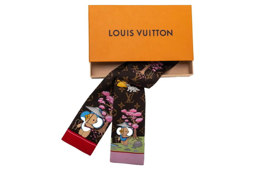 Louis Vuitton Christmas 2021 silk bandeau with Vivienne in Hollywood design. Brand new in original box .
