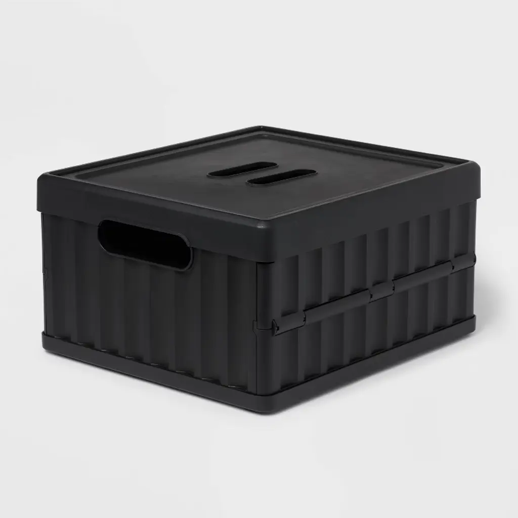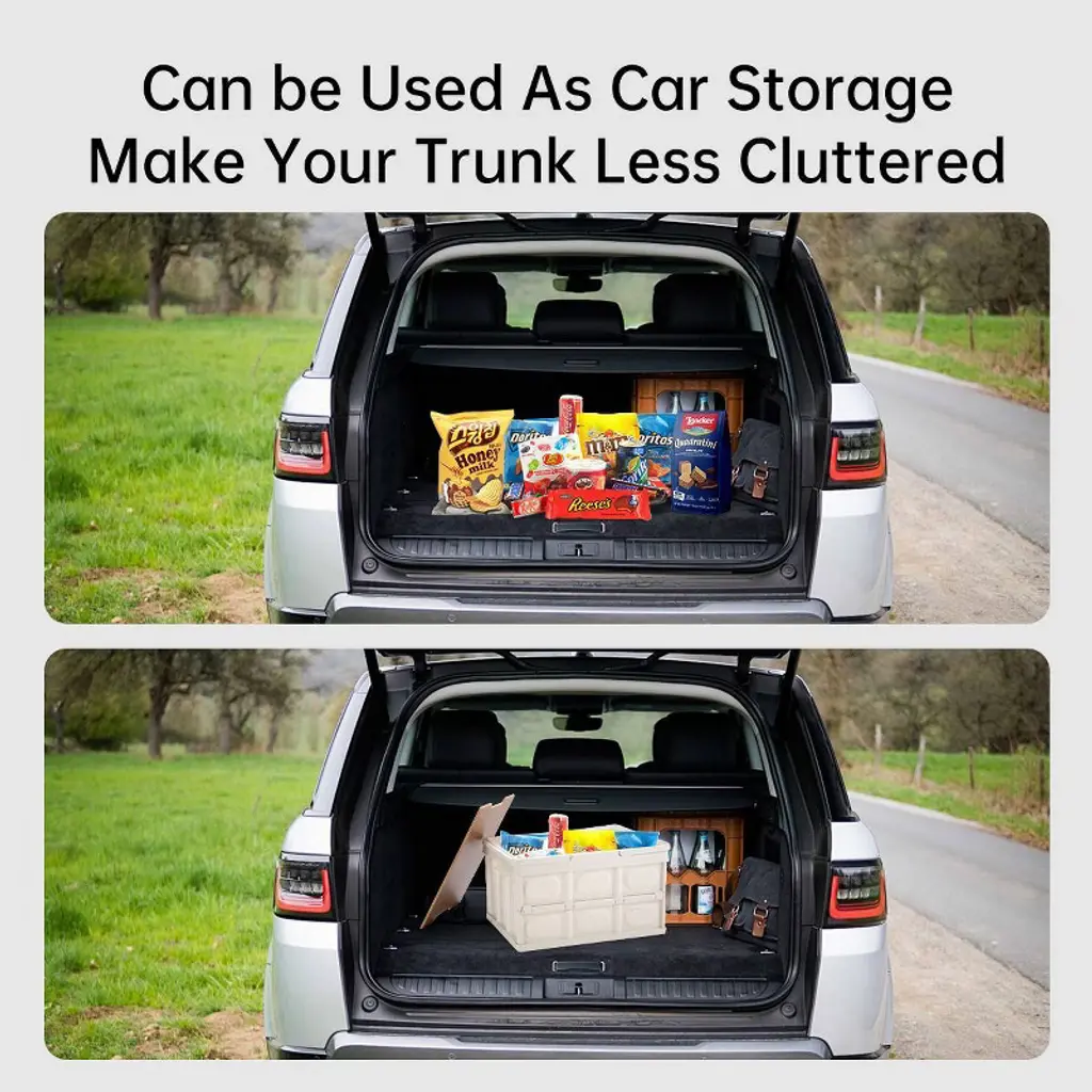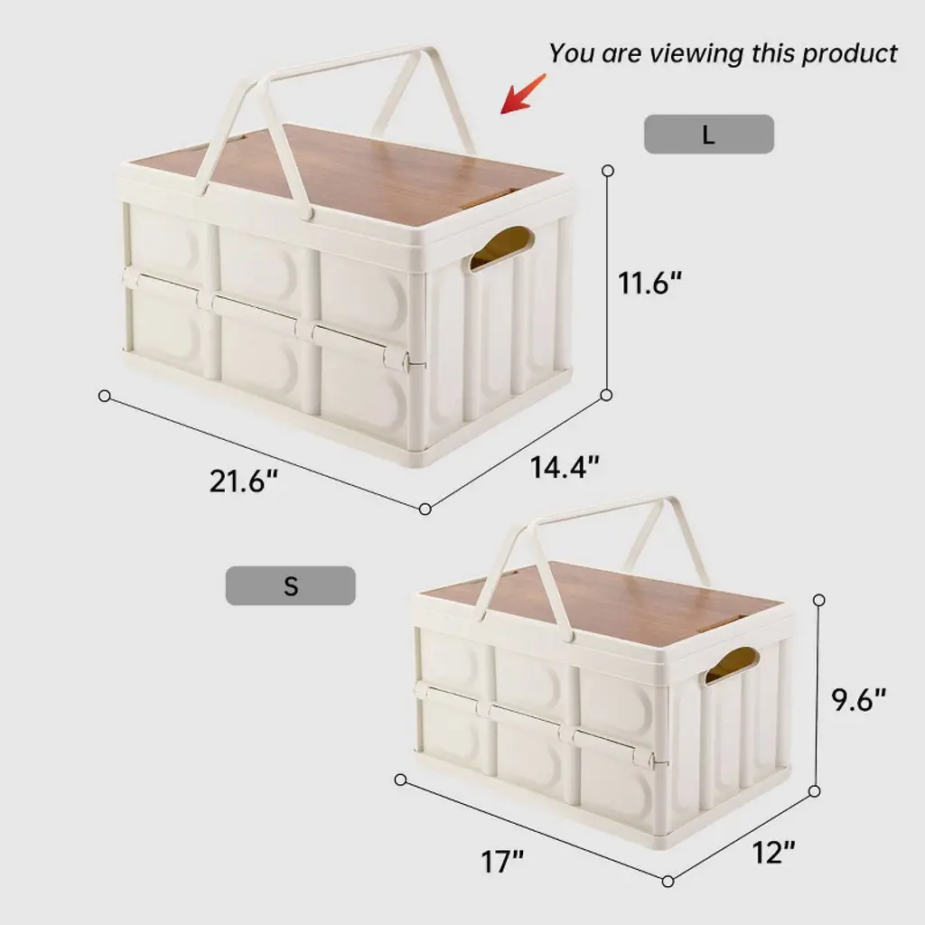 Stay organized on the go with the VUSIGN Collapsible Storage Bins with Lids & Handles (21.6'' x 14.4'' x 11.6''). These 550L (14.5 Gal) portable totes are perfect for home, office, camping, fishing, car, RV, and moving needs. Each bin holds up to 33lbs, making it ideal for storing everything from clothes and gear to tools and toys. The stackable and foldable design allows for easy storage when not in use, while the sturdy lids and handles provide convenience and security. Whether you're organizing your home, packing for a trip, or moving, these versatile bins offer a practical and efficient storage solution.