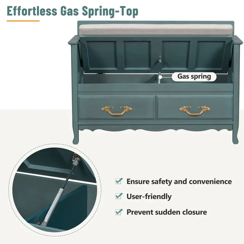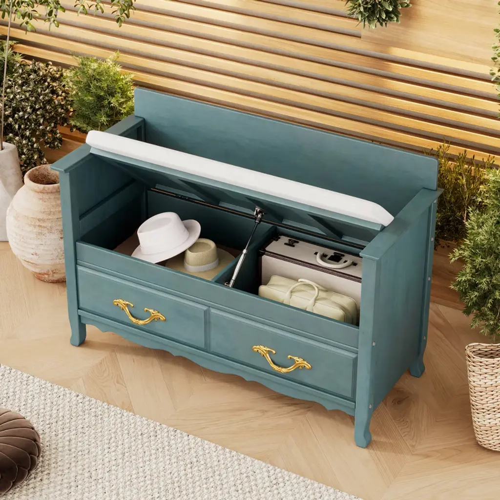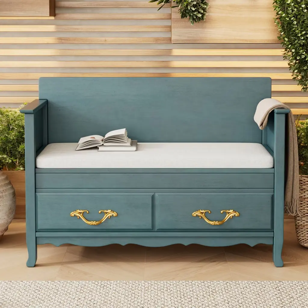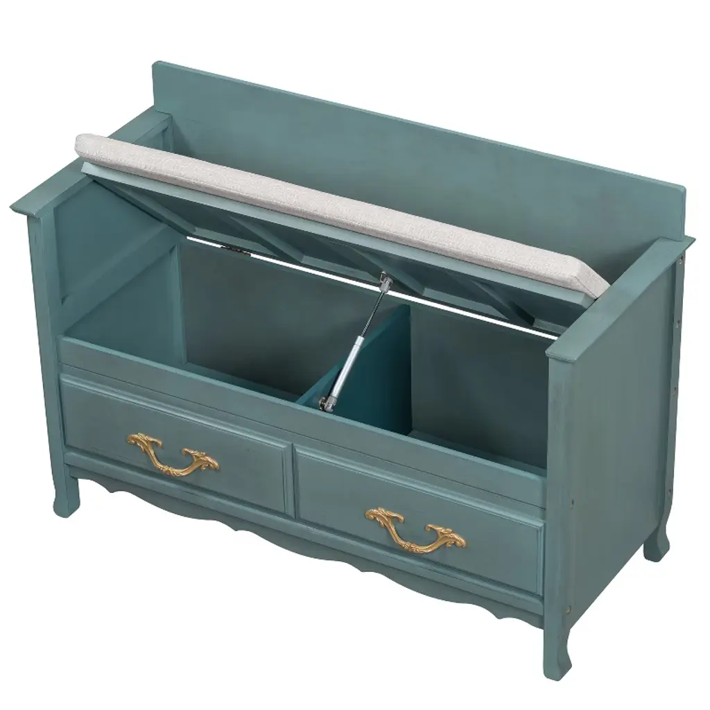 Elevate your entryway with the VYNXARIA Bench in Antique Turquoise. This stylish shoe storage bench features a removable cushion for added comfort and hidden storage to keep your space clutter-free. With a supportive backrest, it¡¯s perfect for relaxing while you put on your shoes. Combining vibrant color with functionality, it¡¯s the ideal addition to your living room or entrance!