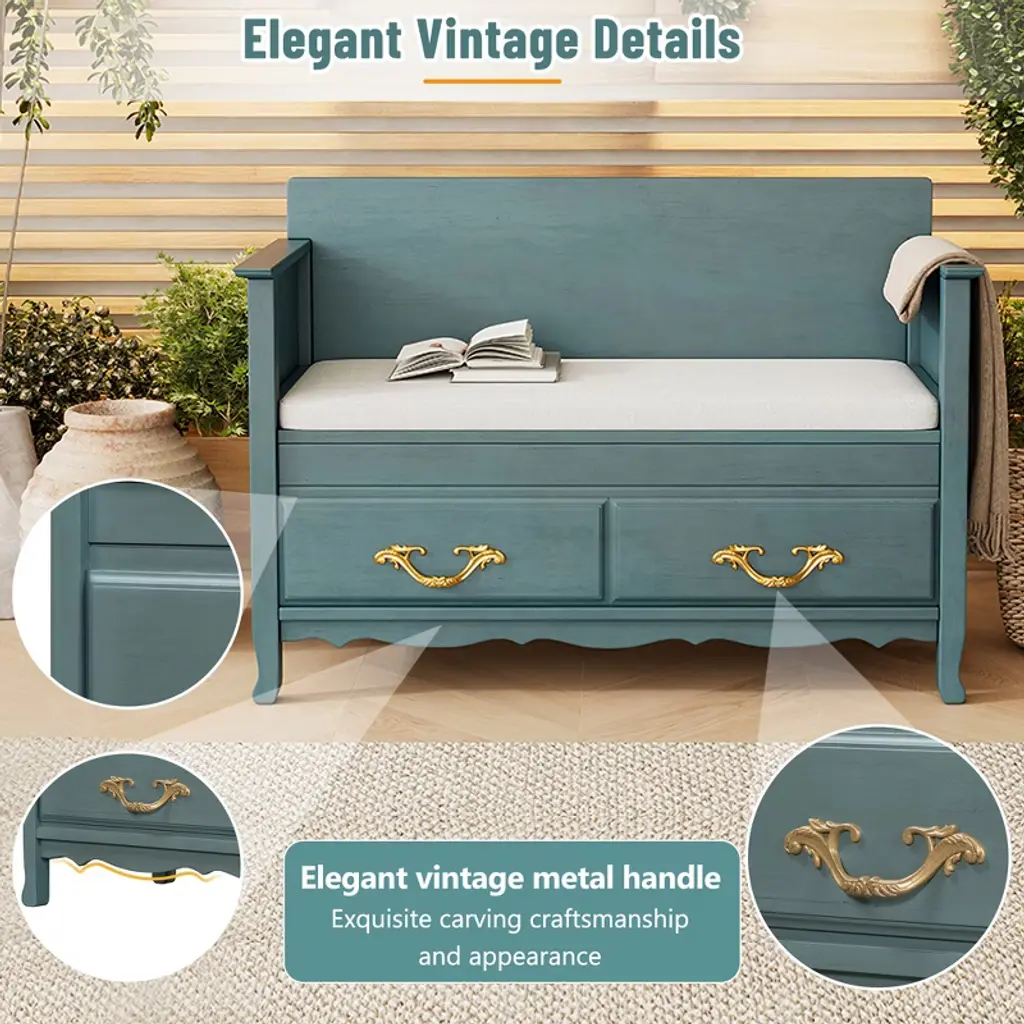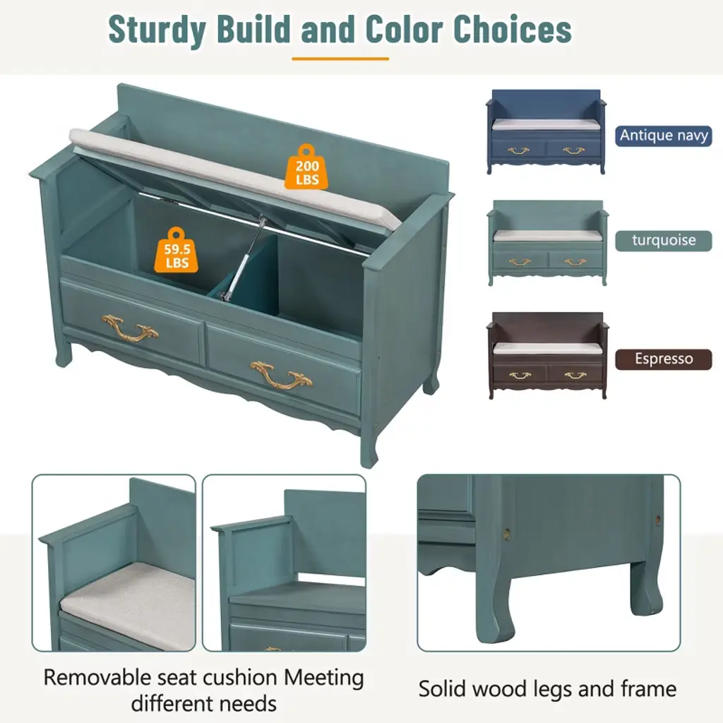Vynxaria Bench With Removable Cushion,entryway Bench With Hidden Storage For Entrance And Living Room,shoe Storage Bench With Back,antique Turquoise