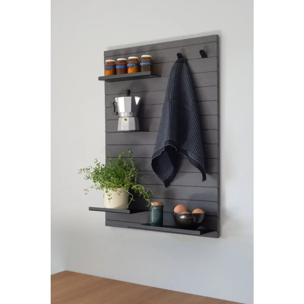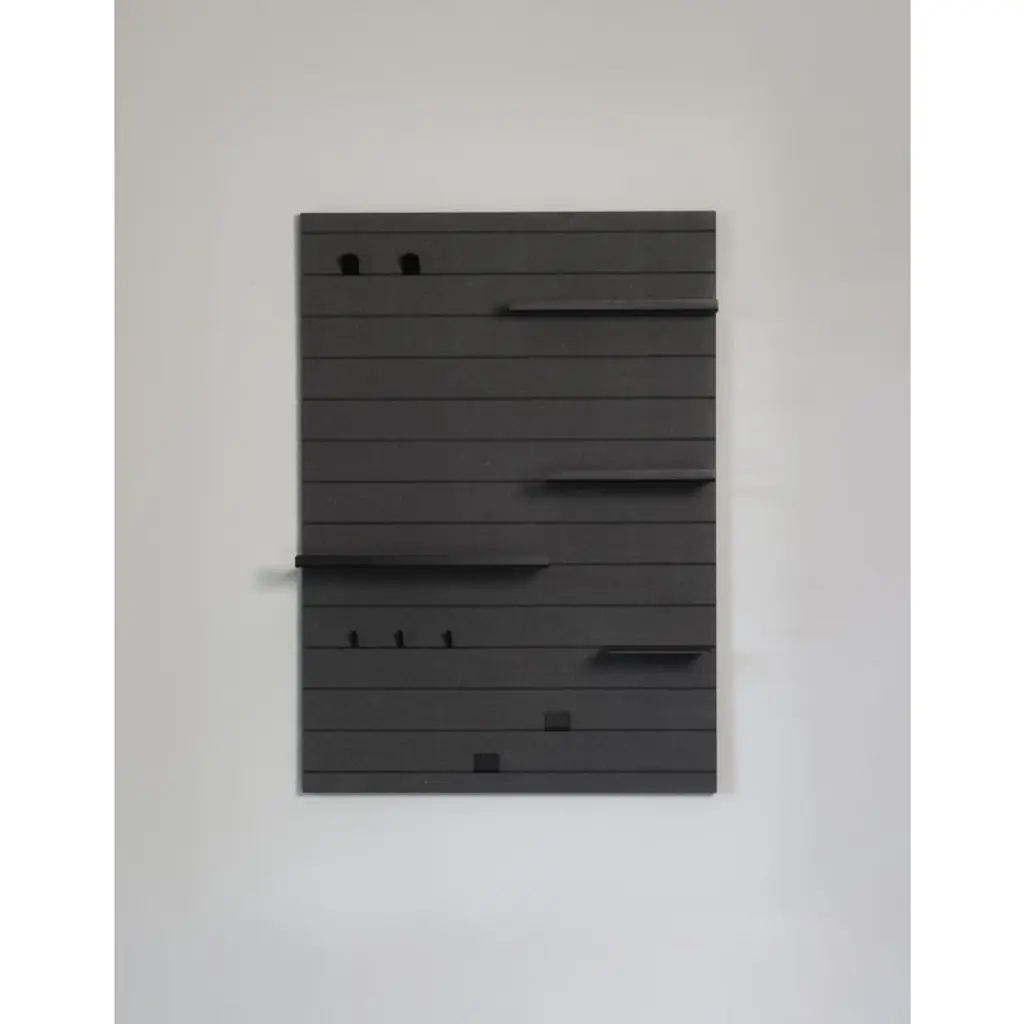 OOJA Displays' W001 shelf brings a touch of Nordic minimalism to your home decor or various displays in shops, cafés, or other public spaces. The wall-mounted display shelf features a backboard with wood paneling that frames the objects beautifully and allows you to position the shelves and hooks at various heights, any way you like. The display's backboard is made of Valchromat fibreboard made from recycled pine wood and wood industry waste material, such as branches and chips, and dyed-through with non-toxic dyes. The shelves and hooks, on the other hand, are made of powder-coated steel. The W001 shelf is available in various different colors, and by combining several shelves, it is possible to create a larger, customized storage or display unit. OOJA Displays' W001 shelf is manufactured in Finland. In addition to the backboard, the package includes: XS shelf (115 x 122,5 mm) Small shelf (65 x 245 mm) Medium shelf (115 x 195 mm) Large shelf (115 x 295 mm) 2 x large hook 3 x small hook 2 x clamp for notes or photos