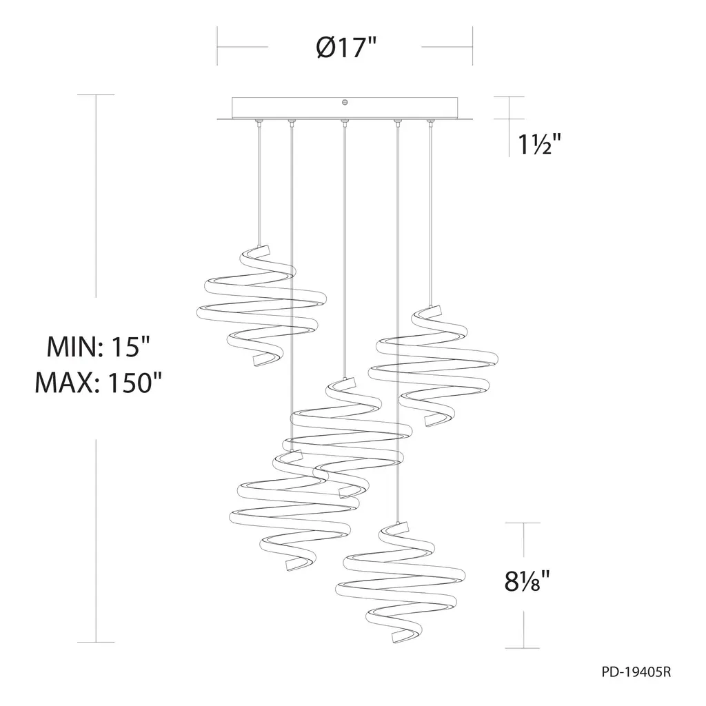 Wac Lighting Pd-19405r Whirl 5 Light 17" Wide Led Abstract Multi Light - Black
