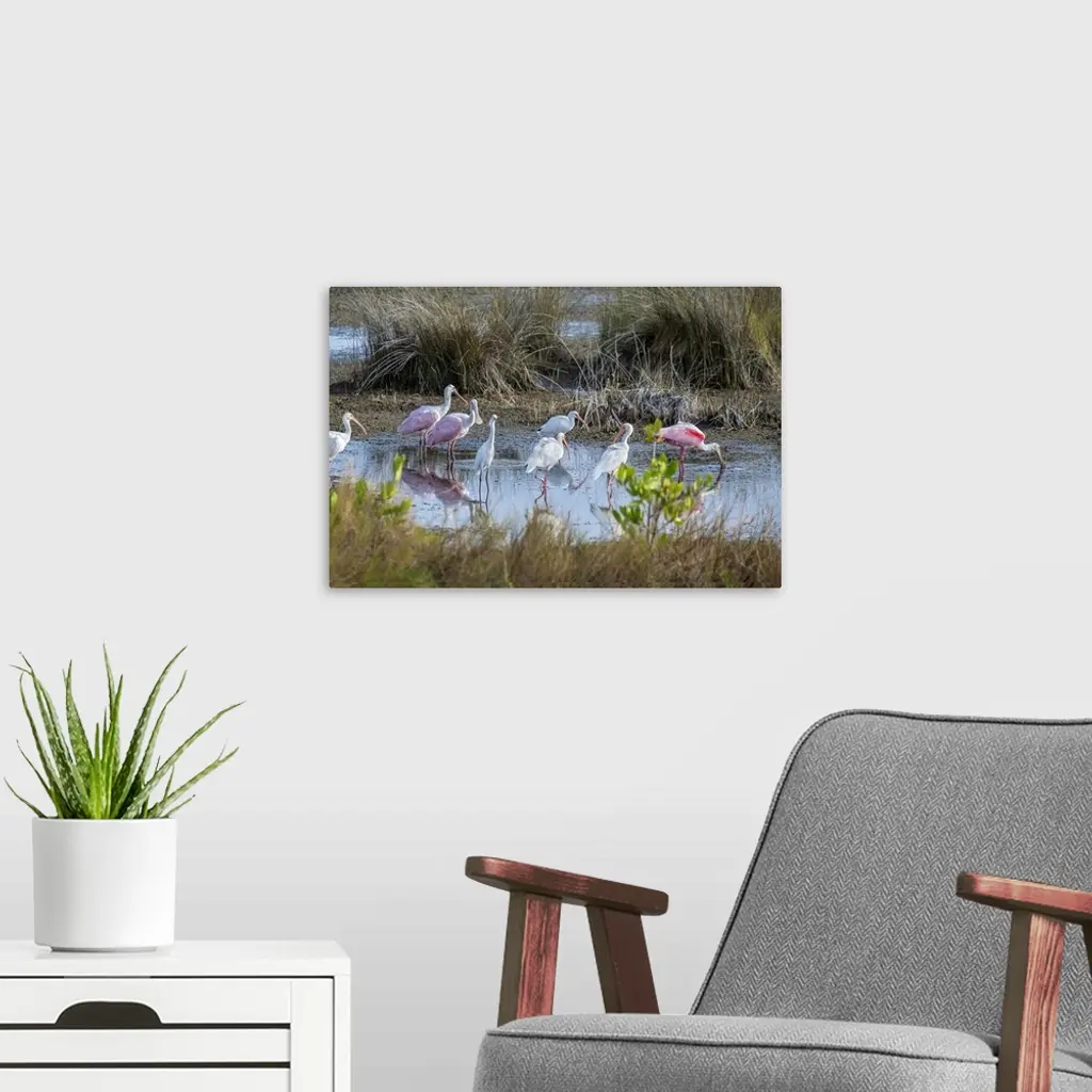 Wading Birds In Marsh, Merritt Island National Wildlife Refuge, Florida