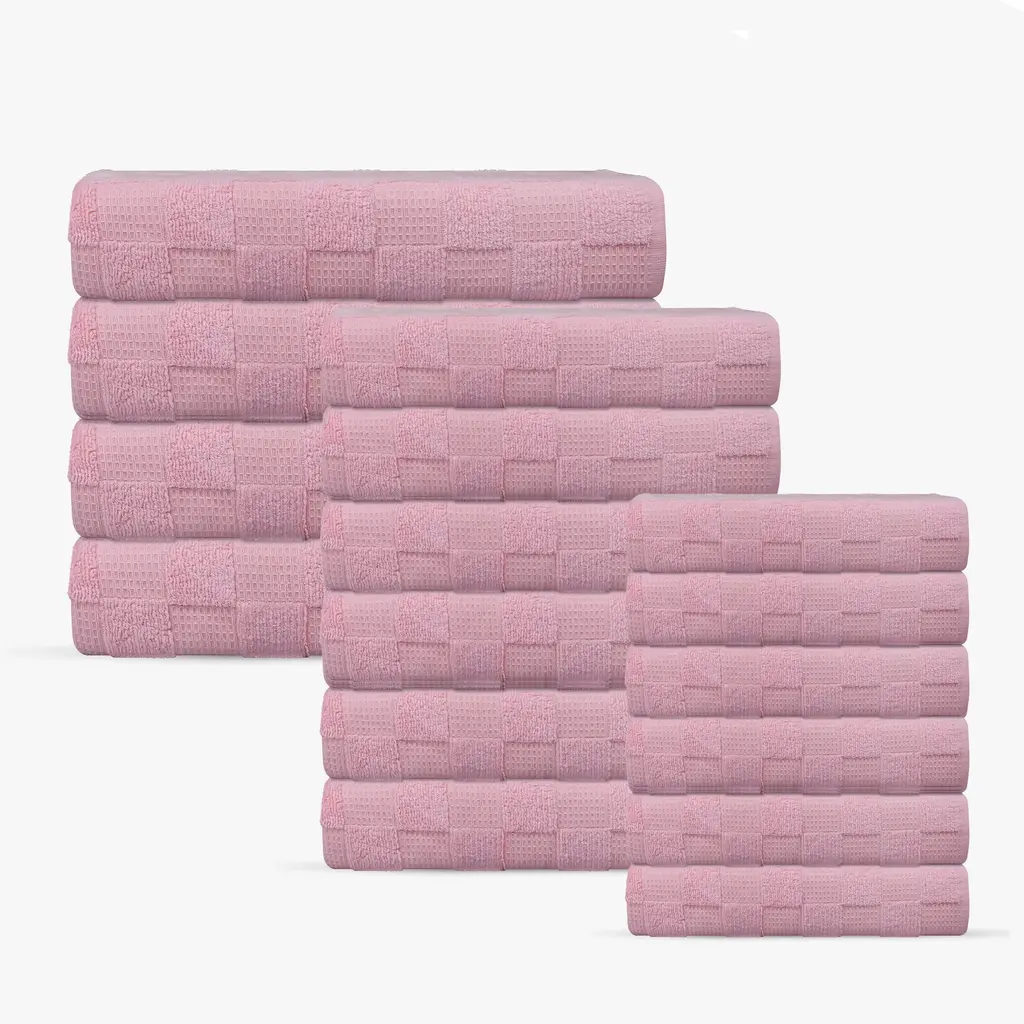 Waffle Terry 16 Pcs Turkish Towels Set - Blush
