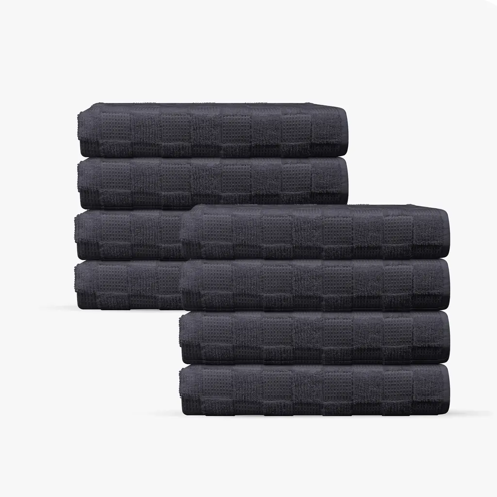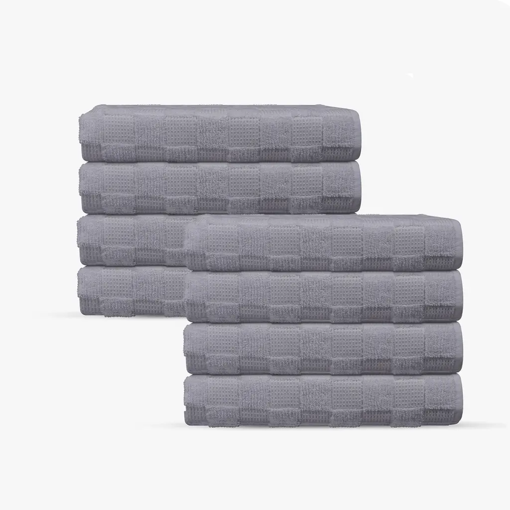 Waffle Terry 8 Pcs Turkish Wash Towels Set - Silver