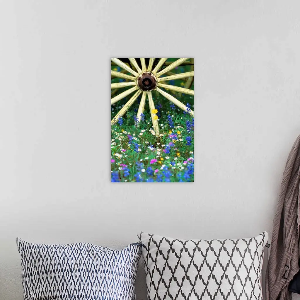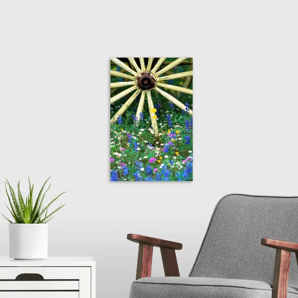 Wagon Wheel Sitting Among Wildflowers wall art for home and office decor. Discover canvas art prints, photos, mural, big canvas art and framed wall art in GreatBigCanvas.com's varied collections.