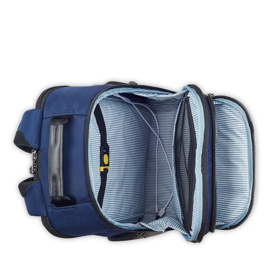 The ingenious Delsey Paris Wagram Collection presents sleek classic formats without contemporary style and function. In ultra-durable ballistic nylon with leather accents, the pieces range from an around-the-town backpack to a wheeled checked trunk that lets you pack to the max.