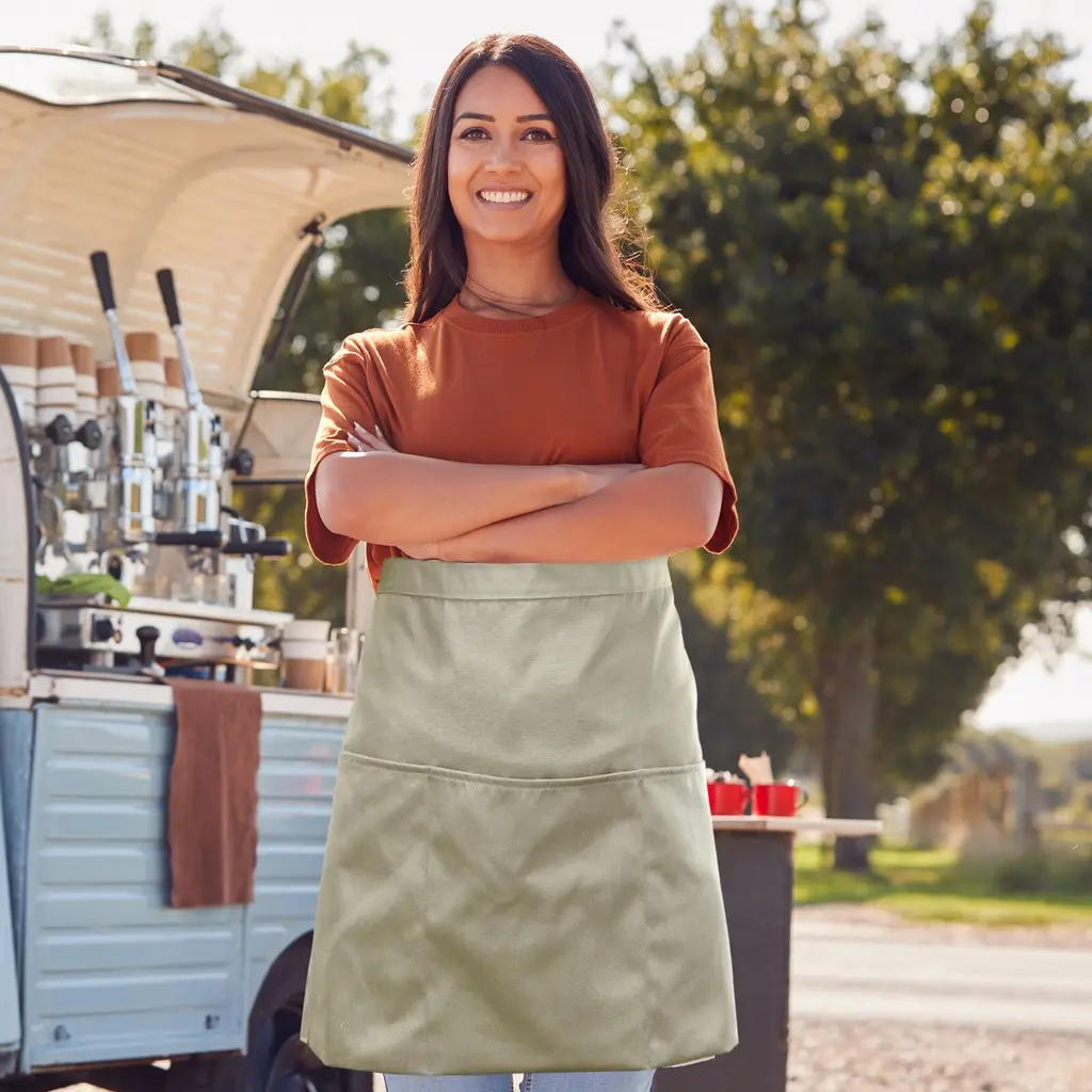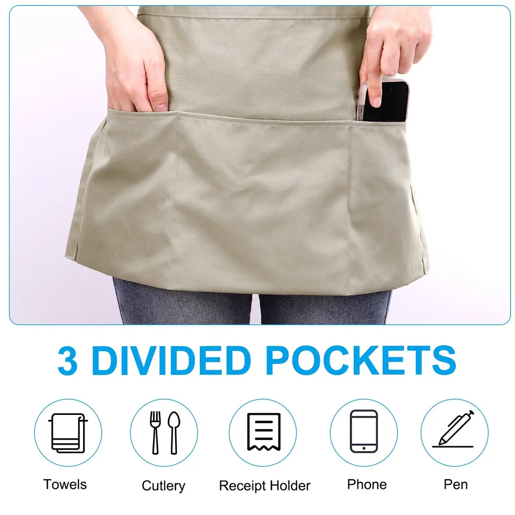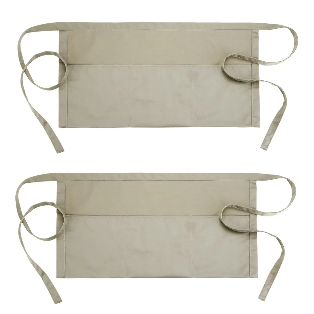 Waist Apron 12.6 X 23.1 Inch, Waitress Short Apron With Pockets - Khaki - 2 Pack