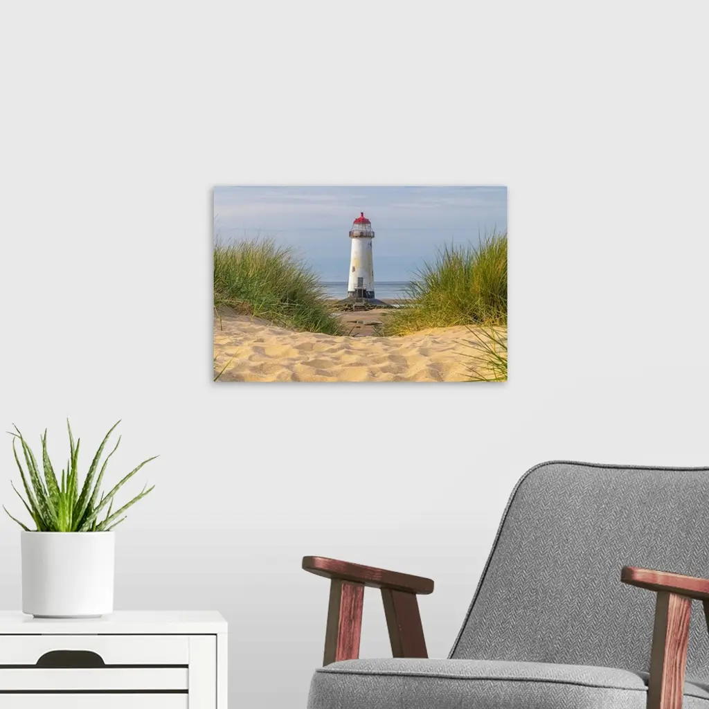 Wales, Flintshire, Talacre Beach, Point Of Ayr Lighthouse Or Talacre Lighthouse