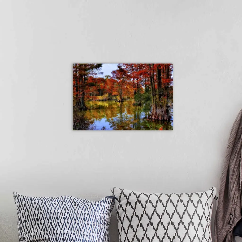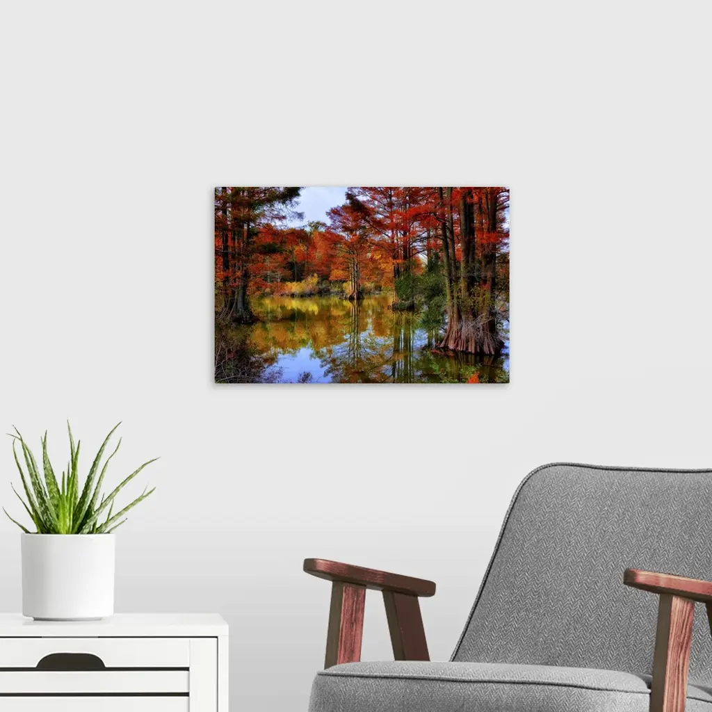 Walk along the path in the Bald Cypress swamp on a beautiful fall day.