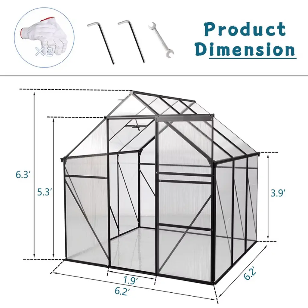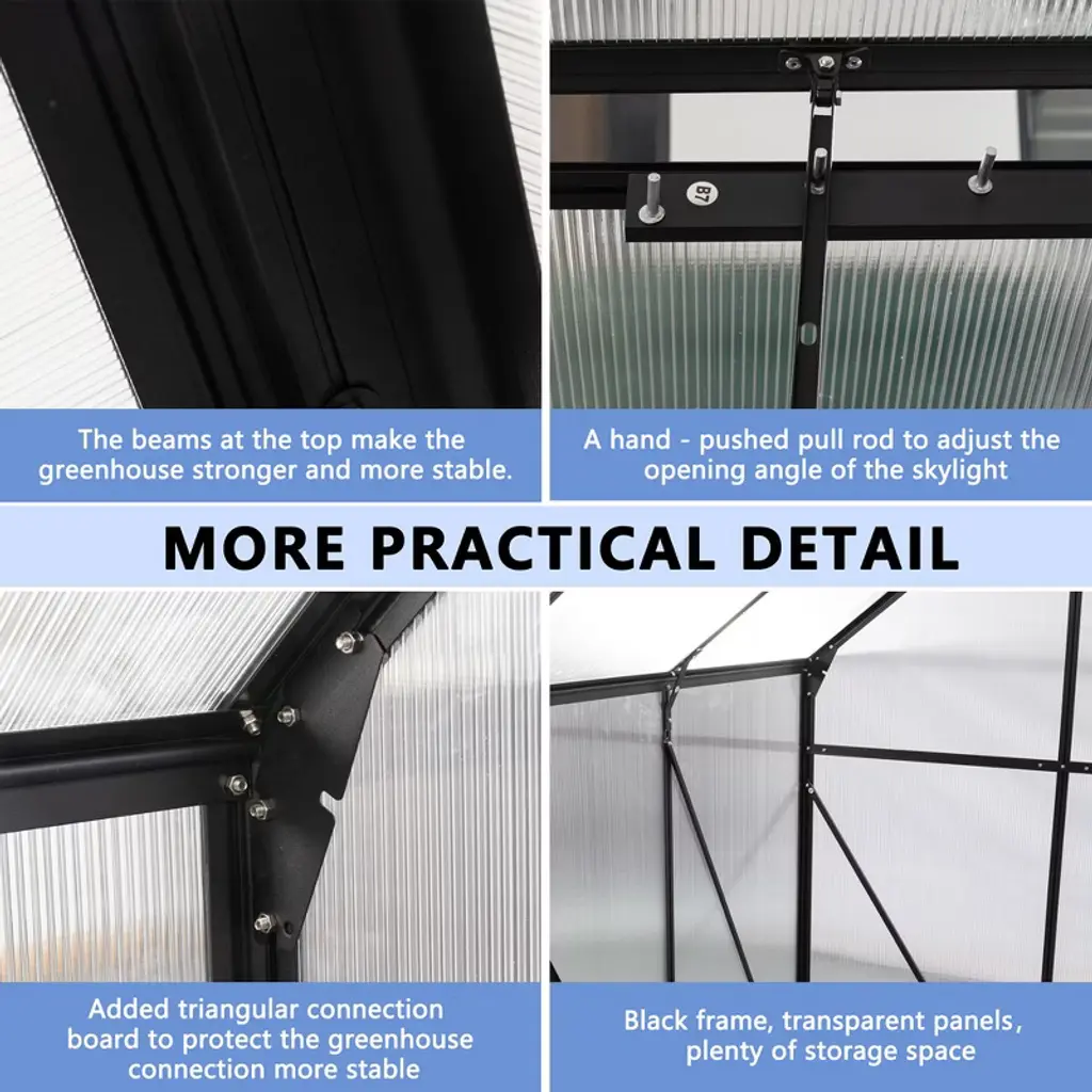 Name: Walk-in Greenhouse Color: Black Material: Aluminium Packing list: 1x Walk-in Greenhouse 1x Accessory Pack