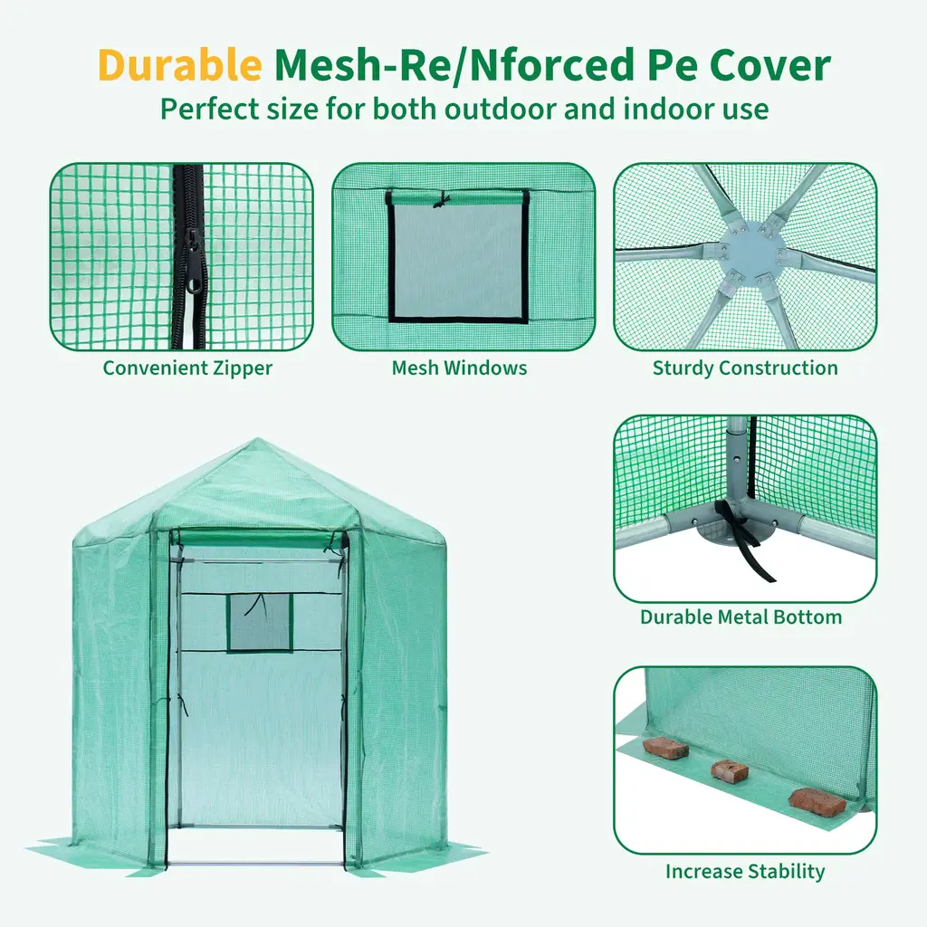 Walk-In Greenhouse Hexagonal Upgrade Reinforced Frame Heavy Duty Plastic Greenhouse Reinforced Thickened Waterproof Insulation - 82.68in. W X 82.68 In. L X 90.55 In. H