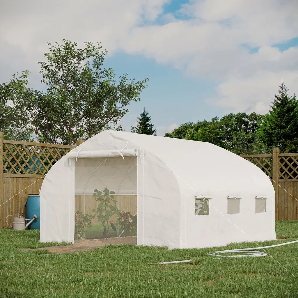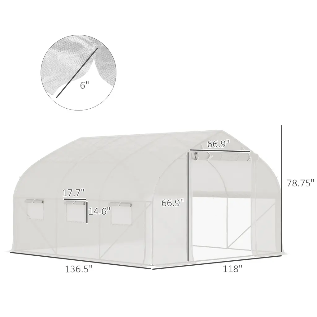 Walk-In Tunnel Greenhouse, Green House With Zippered Mesh Door, 7 Mesh Windows & Roll-Up Sidewalls, With Galvanized Steel Hoops - Steel