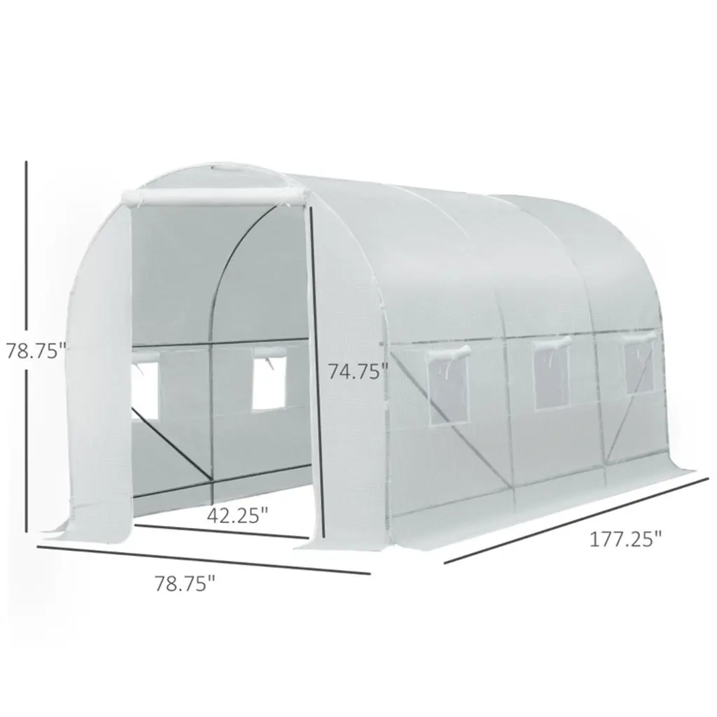 Walk-In Tunnel Greenhouse, Large Garden Hot House Kit With 6 Roll-Up Windows & Roll Up Door 15' X 7' X 7' - 177.25” L X 78.75” W X 78.75” H