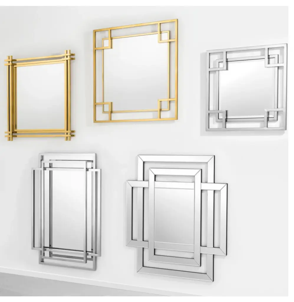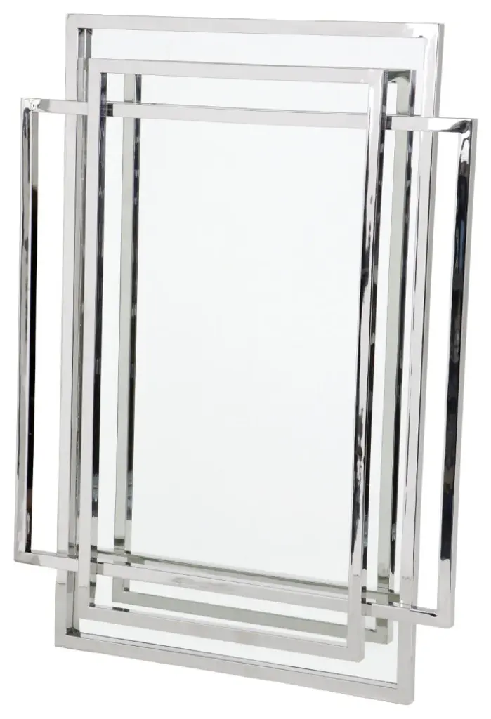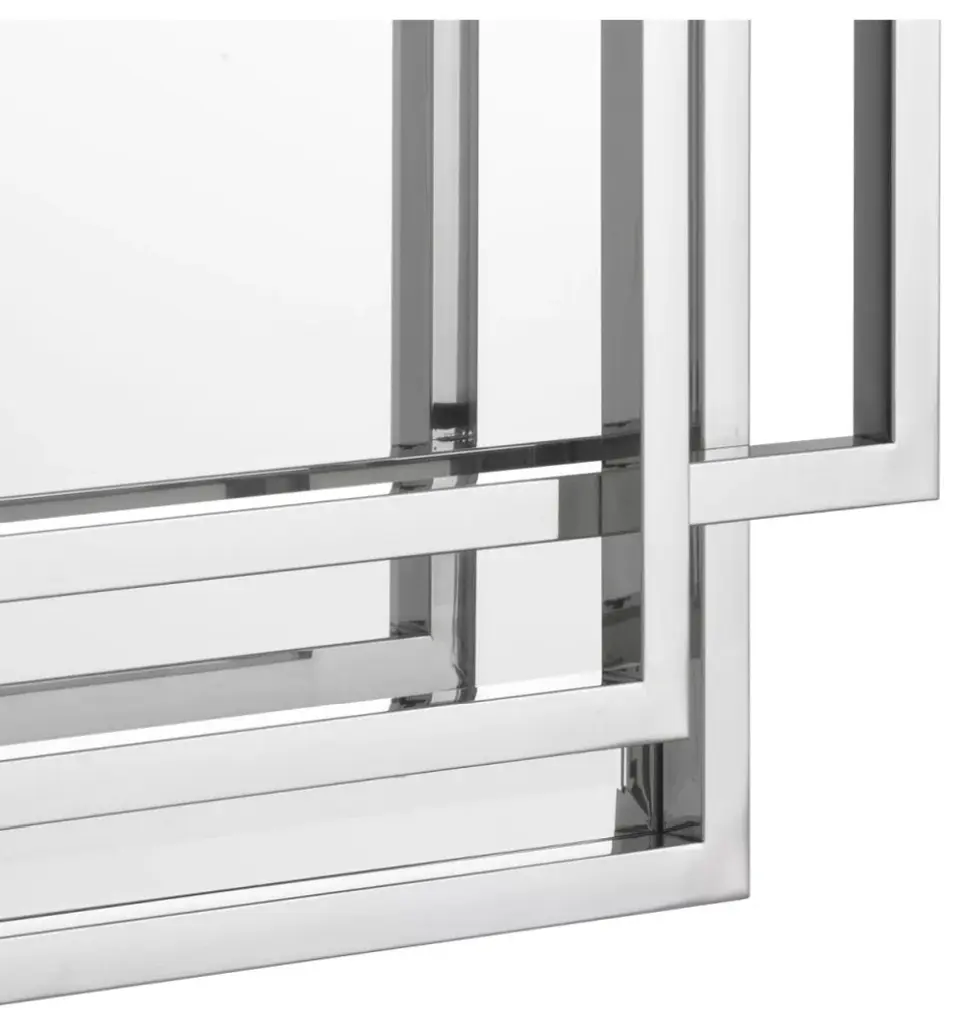 Let the light bounce around for brightness while adding grace to your space with the New Classic Mirror. Crafted from stainless steel, its highly polished frame features an openwork layered design. Place it over a mantel in your living room, a console in your hallway, or a dressing table in your bedroom.W33 x D33 x H45 in | Weight 53lbsMaterials | Mirror glass, Stainless steel, MDFFinish | Polished nickel finish