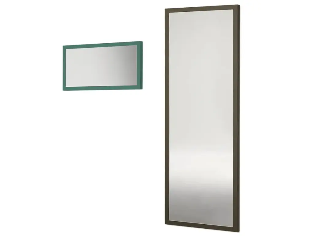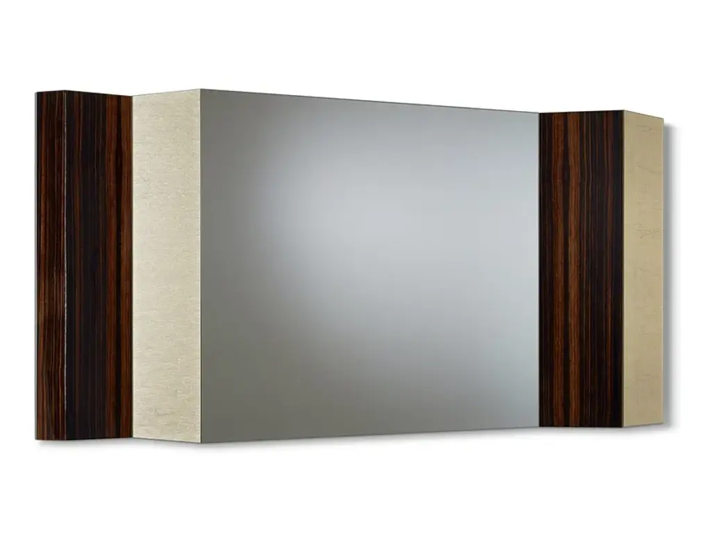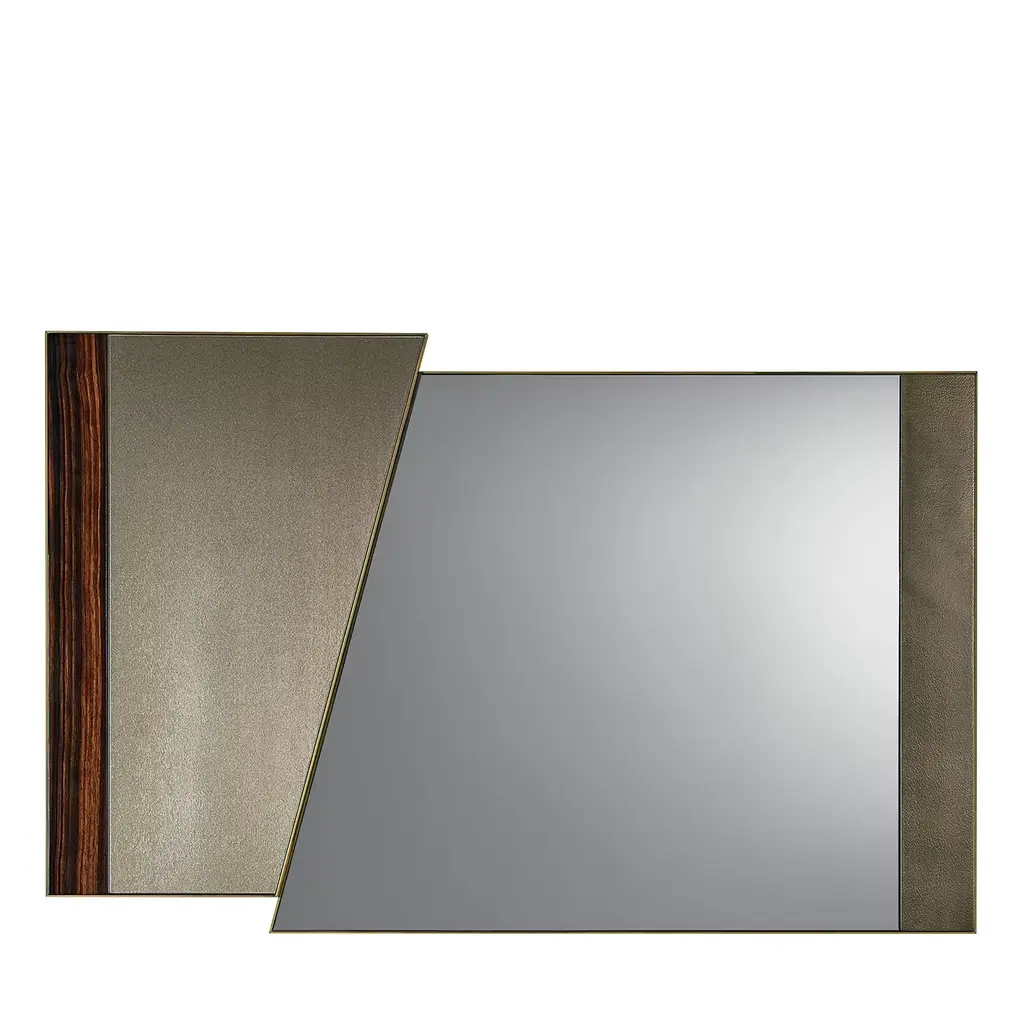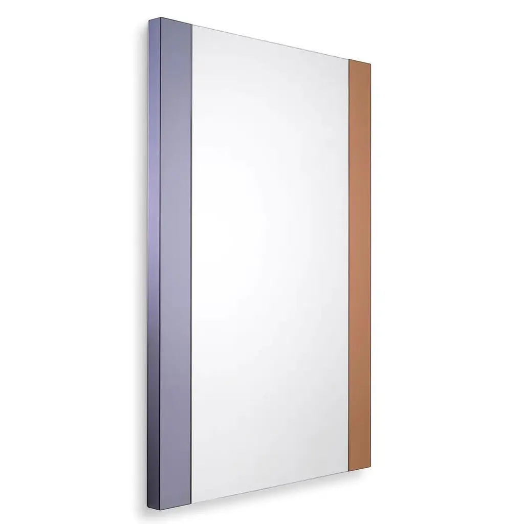 Wall mirror, smoked mirrored glass and copper mirrored glass.This wall mirror is decorated with two vertical stripes, one in smoked mirrored glass and the other in amber mirrored glass, adding a touch of luxury to its look.L. 120 W. 80 D. 6 cm