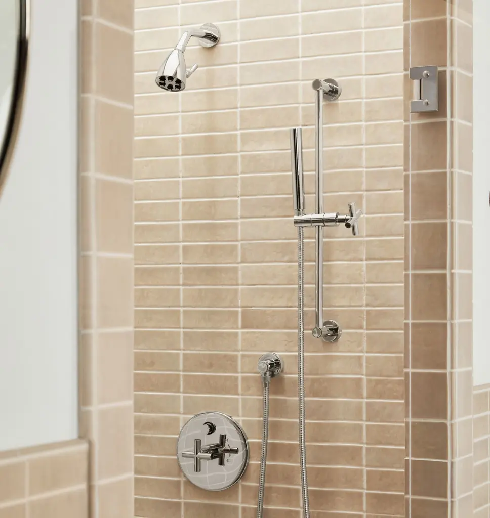 Streamlined and understated, this hinge adds a tailored look to glass shower doors.