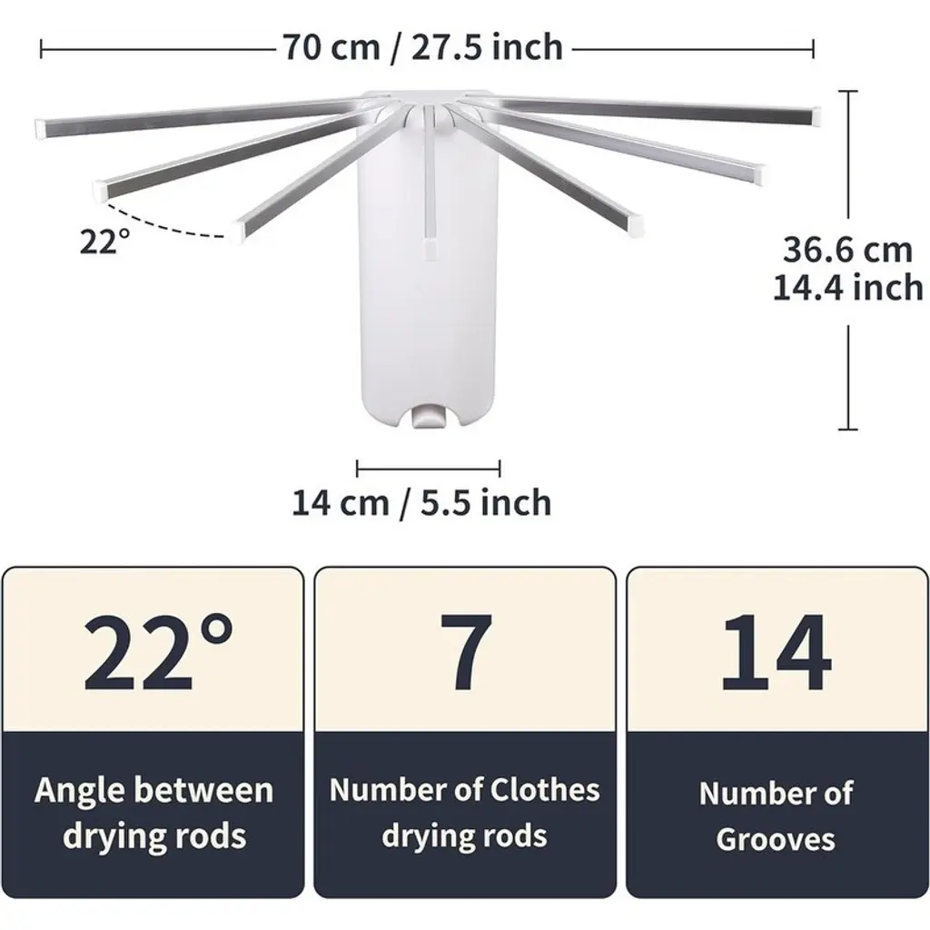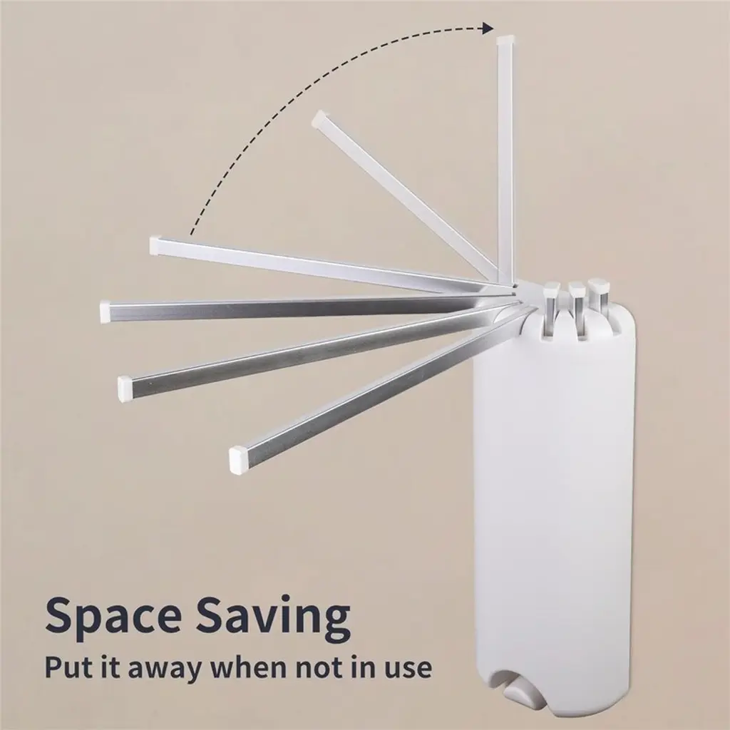 1. **Efficient Space-Saving Design**: This foldable wall-mounted drying rack is designed to maximize space, folding up smartly when not in use. 2. **Versatile and Adjustable**: With 7 adjustable rods and grooves, customize the drying space according to your needs while promoting airflow for quicker drying. 3. **Easy Installation**: Simple setup with minimal steps required allows for hassle-free mounting and movement as needed. 4. **Sturdy and Durable Materials**: Constructed from aluminum, this rack is waterproof and rust-resistant, ensuring longevity and reliability. 5. **Multi-Use Applications**: Perfect for various laundry needs, this drying rack suits balconies, bedrooms, and bathrooms alike.