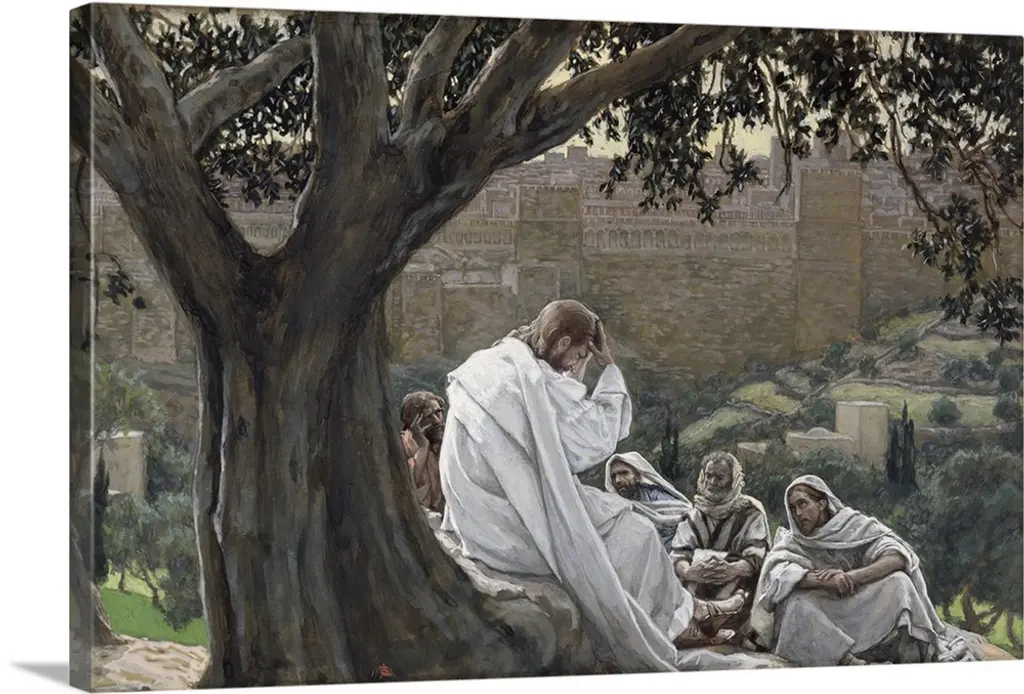Sweating drops of blood, Jesus pleads with the Father in this poignantly rendered Garden of Gethsemane scene. Behind Him, the disciples sleep, and farther back, Judas approaches with the soldiers. The verse Matthew 26:42 is displayed: My Father, if it is not possible for this cup to be taken away unless I drink it, may your will be done. Wall plaque is 20x16x.75; sides are finished in black. Made of MDF wood; hanging slot in back. Art is by Abraham Hunter copyright MHS Licensing 2021.