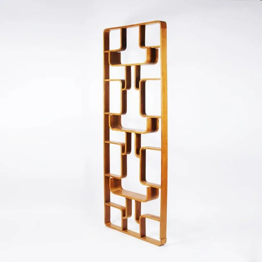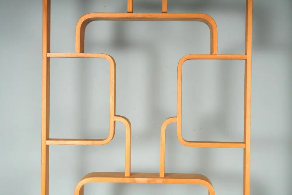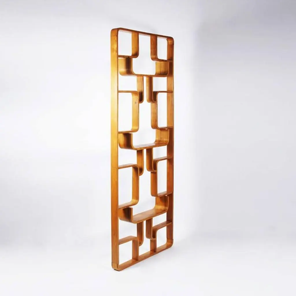 Flower (dividing) wall made of the bent beech plywood and features geometric paterns. In restored condition.This is the seldom version with the round corners.Designed by Ludvik Volak and manufactured in Czekoslovakia in Drevnopodnik Holesov in the 1960s.Delivery about three-four weeks.