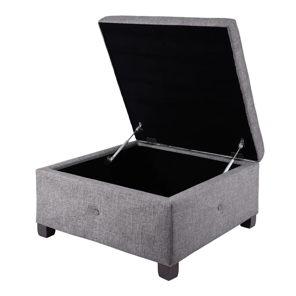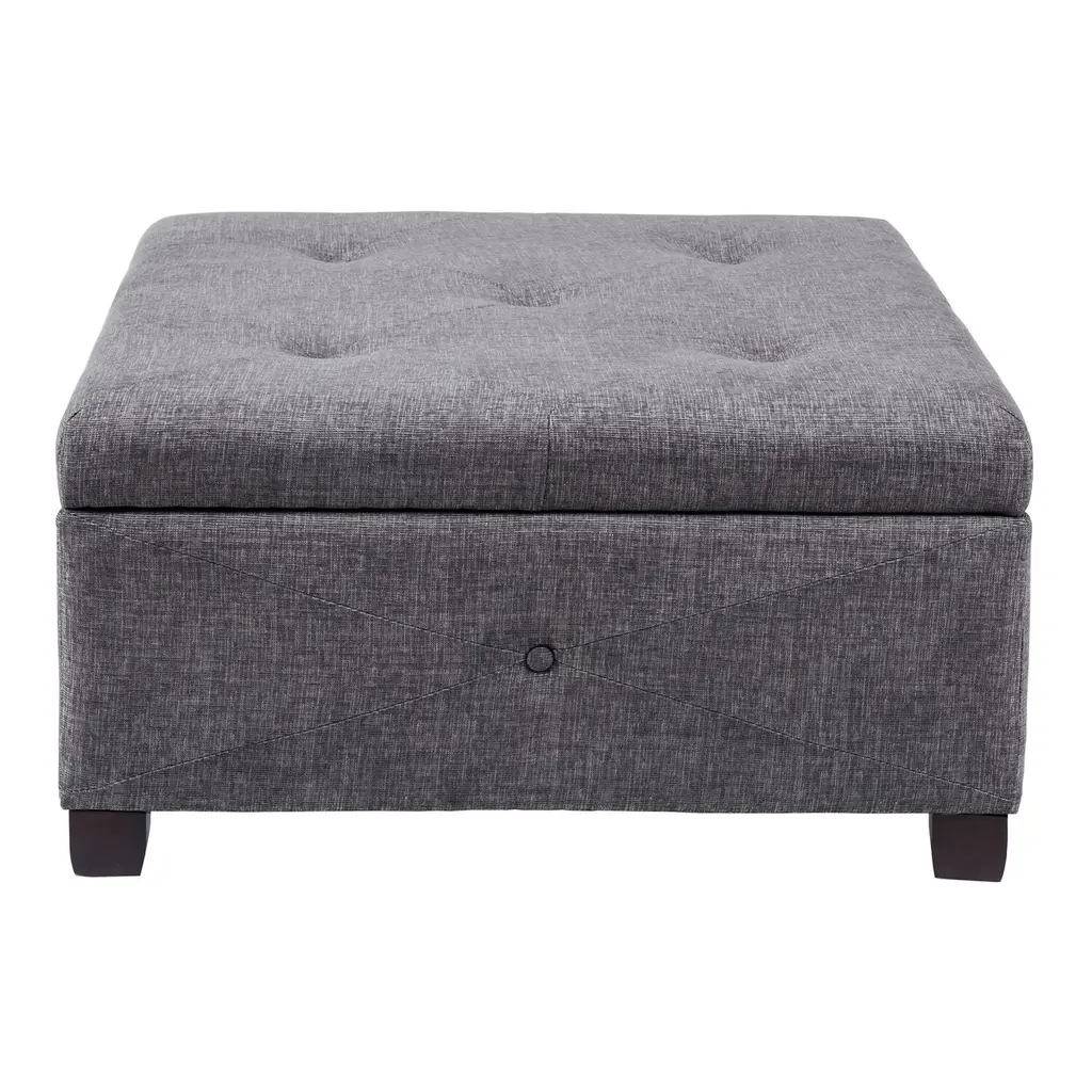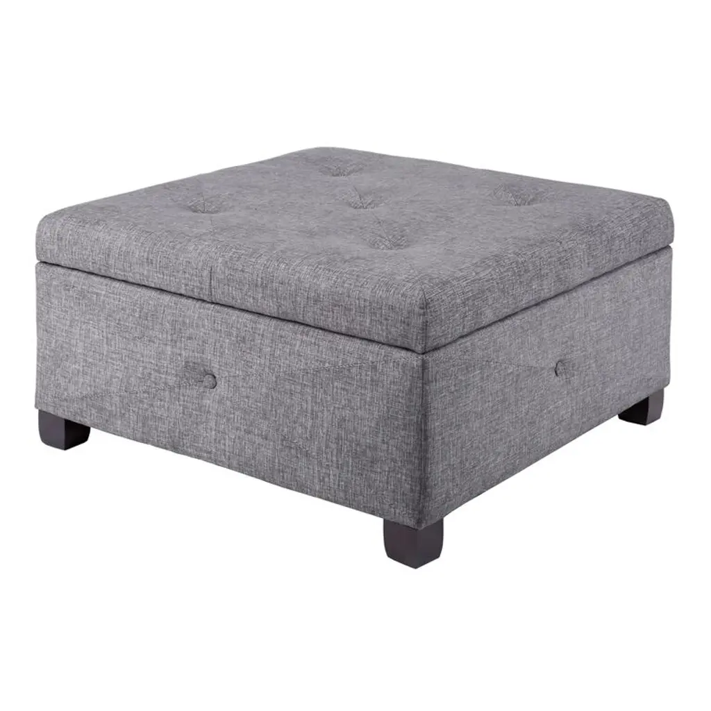 Featuring crisp upholstery in a choice of neutral hues with tufted-button detailing, the square Wally ottoman offers ample storage for home essentials. A cozy large footstool for the sofa or your favorite chair, this elegant storage ottoman doubles as a plush extra seat that keeps blankets, linens and accessories organized and out of sight.