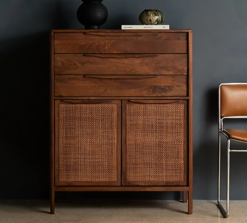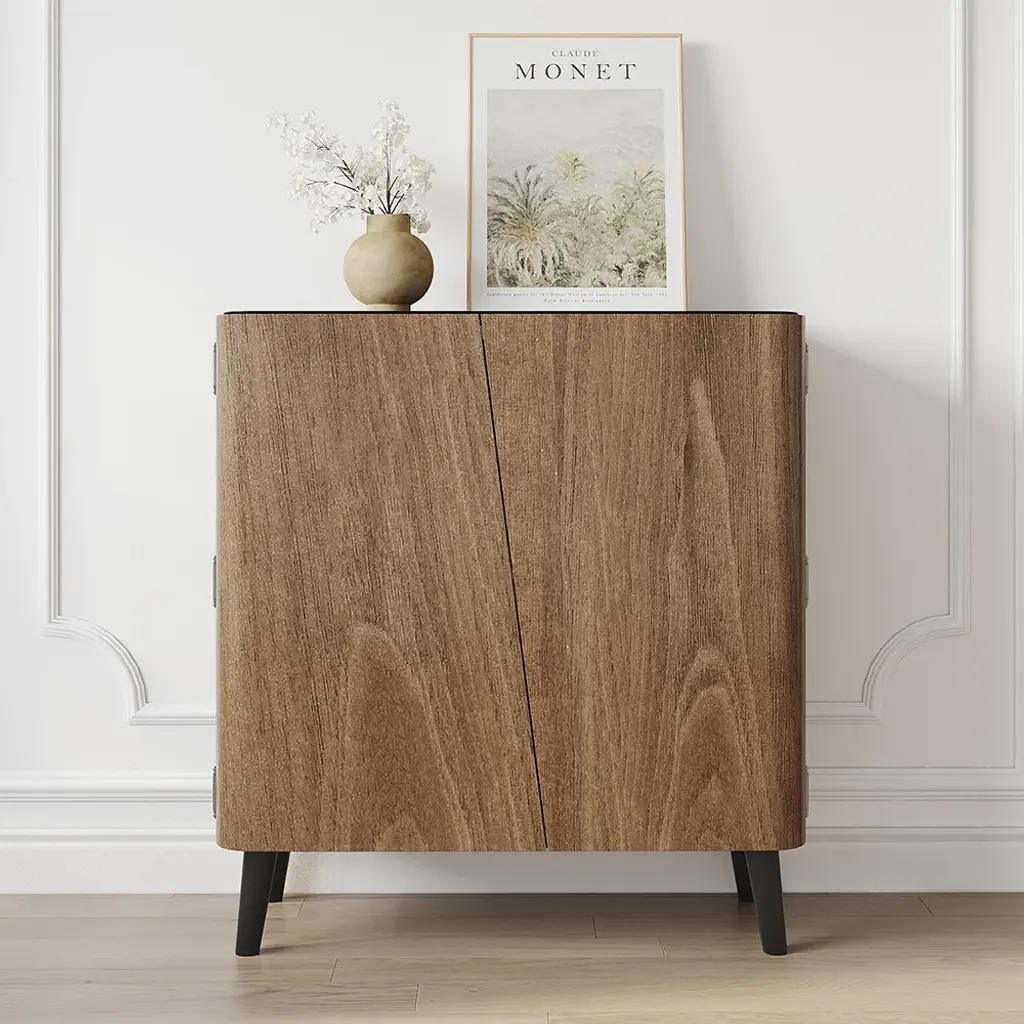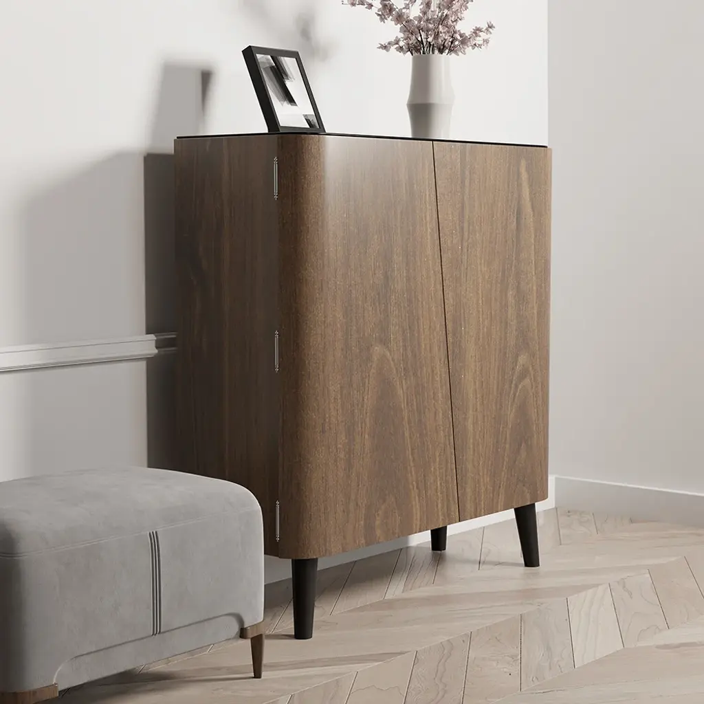 This shoe cabinet will match any contemporary design made from a subtle blend of black and walnut. It has a smooth top and is ideal for books, keys, periodicals, or flowers. Features: 【Durable】 Made of high-quality medium-density fiberboard and carbon steel, durable and sustainable for a long time. 【Multi-Storage Space】 Behind the two doors, there are 3 shelves for 14 pairs of shoes to keep your foyer or entrance clean and tidy. The Takagi leg design provides additional shoe storage. 【Multi-scene Use】 The modern and classic look is ideal for any entryway, foyer, or room.