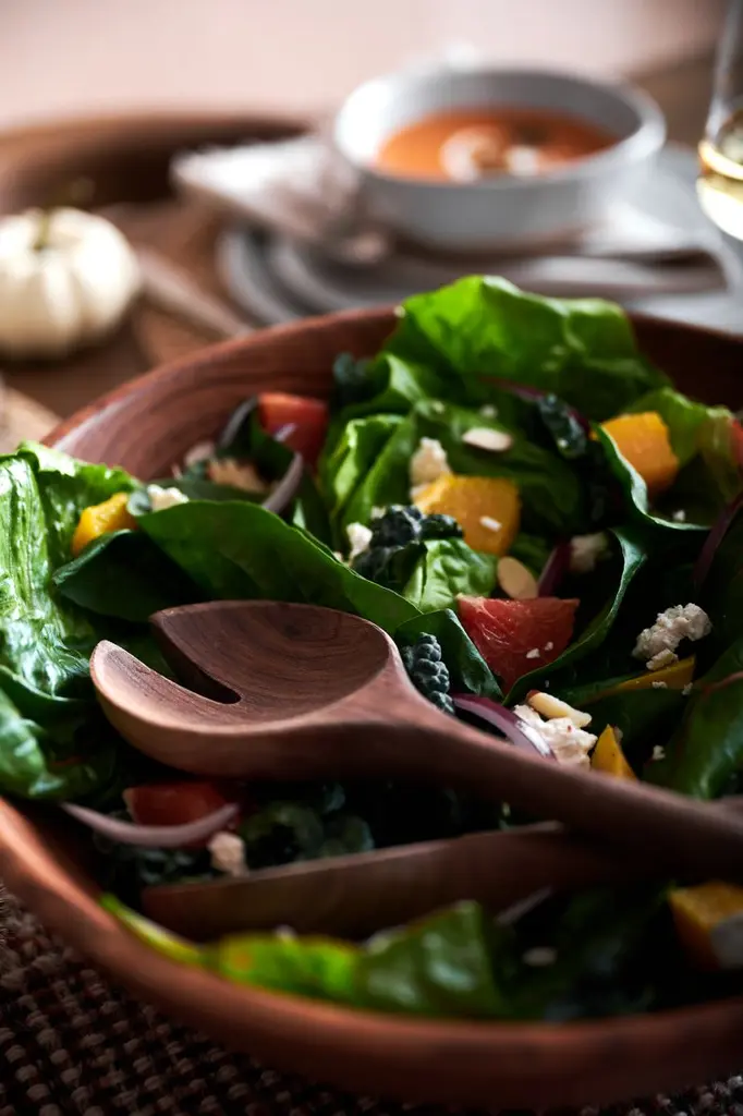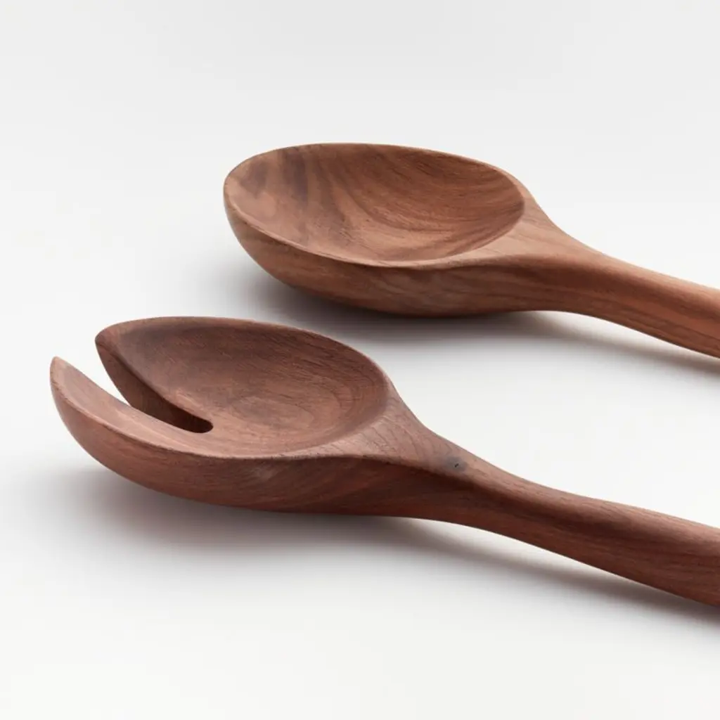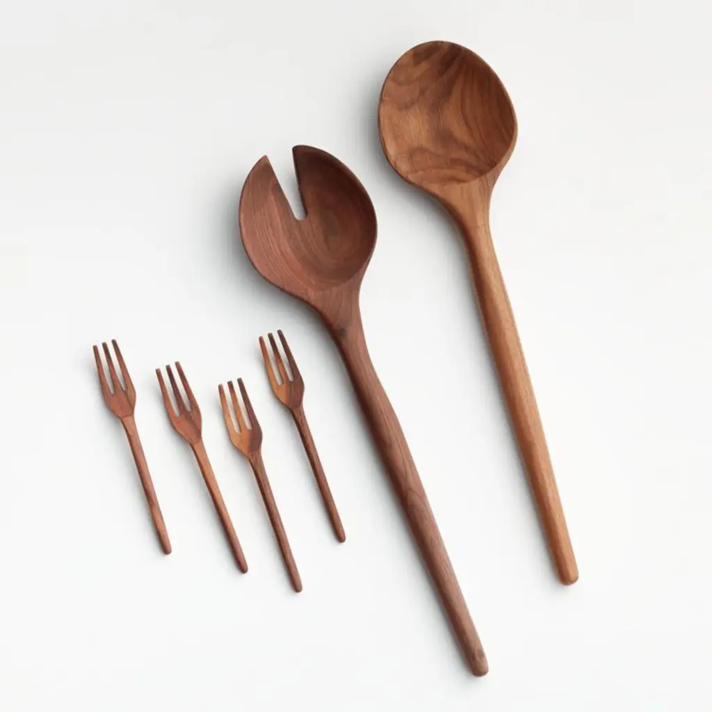 Serve lentil and quinoa, roasted vegetable or caprese salads with our stunning black walnut servers. Carved of solid wood, the gorgeously grained pair boasts tapered handles, well-rounded bowls and a modern cutout. The set makes a lovely housewarming or wedding gift, especially paired with one of our hardwood bowls. The two walnut servers are Crate and Barrel exclusives.By choosing FSC®-certified products, you are supporting responsible management of the world's forests.