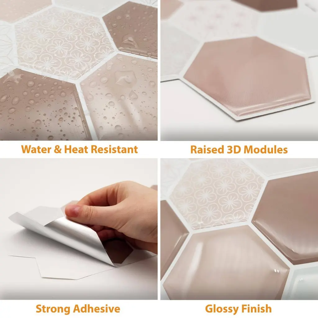 Revamp your home interiors effortlessly with the Hexa Glossy 3D Tile Stickers from Walplus! With their minimalistic colors and subtle patterns, these 3D sticker tiles provide a quick and easy way to give your home a fresh new look without the need for traditional tiles. The Epoxy surfaces of these stickers offer long-lasting durability, along with water and fire resistance. Simply peel and stick onto any clean, flat surface and transform your home within minutes! These user-friendly stickers can be easily trimmed or cut to fit, making them ideal for a wide range of applications.Features:Other Sections: