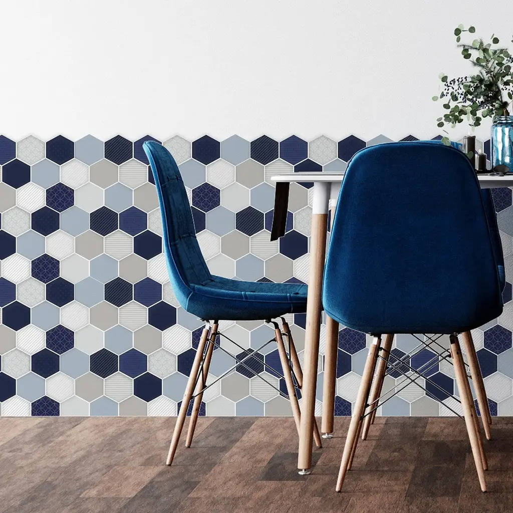 Walplus Honey Hexagon Glossy Peel And Stick Backsplash 11.8"x6" 12pcs - Blue - 36pcs